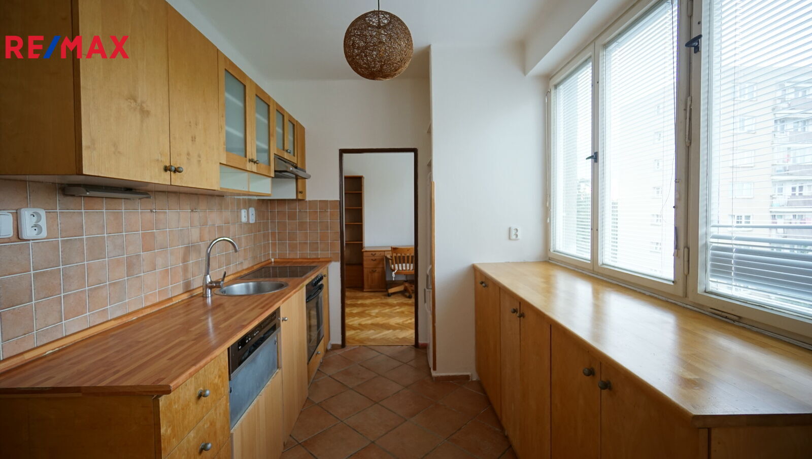 Nabízíme k dlouhodobému pronájmu světlý a udržovaný byt s celkovou užitnou plochou 65m2. Byt se nachází ve třetím patře cihlového domu s výtahem. Dispozici bytu tvoří obývací pokoj s kuchyňským koutem (26m2). Kuchyňská linka vybavena el. troubou a sklokeramickou varnou deskou s digestoří, myčkou. Naproti kuchyňské lince stojí samostatně stojící lednice. V bytě jsou dvě samostatné ložnice, orientované do klidné ulice Nad Primaskou (11m2 a 16m2). V jedné ložnici je vestavěná skříň, ve druhé komoda a psací stůl.