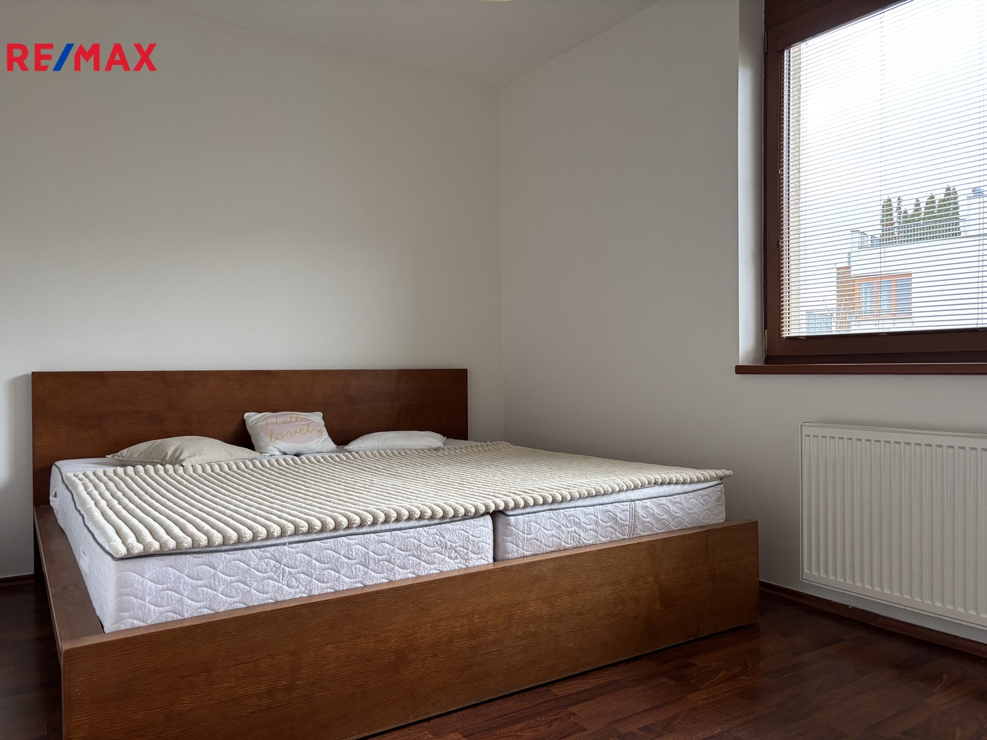V bytě se nachází předsíň s prostornou vestavnou šatní skříní a zrcadlem, ze které se vstupuje do koupelny, ta je vybavena vanou, součástí vybavení koupelny je pračka, WC v koupelně. Hlavní obytný prostor tvoří obývací pokoj s moderní kuchyňskou linkou, která nabídne dostatek pracovního prostoru i pro náročné kuchaře/kuchařky, nechybí elektrická varná deska s digestoří, elektrická trouba, lednice s mrazákem a myčka. Byt je velmi slunný, přes velká okna proudí dovnitř dostatek světla po celý den. Z obývacího pokoje se vychází na balkon s podlahou z exotického dřeva a krásným výhledem do zeleně. Z hlavní místnosti se dále dostanete do ložnice. V ložnici je umístěna manželská postel a šatní skřín.