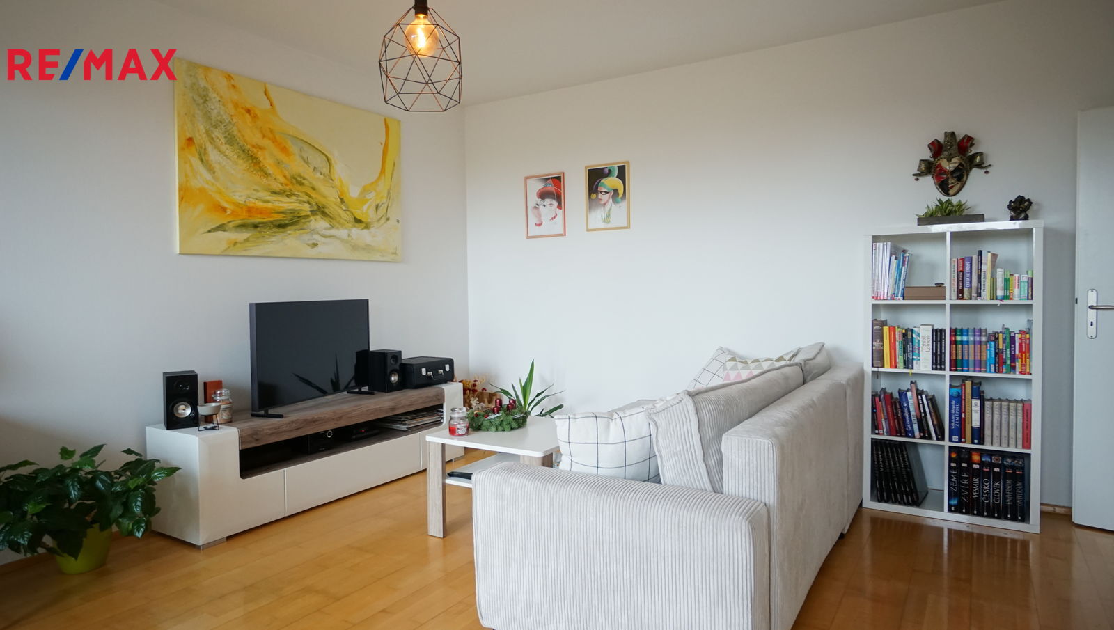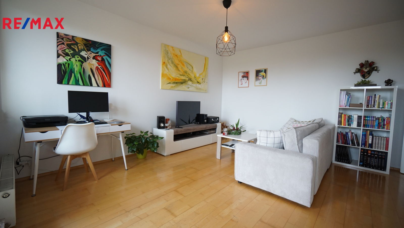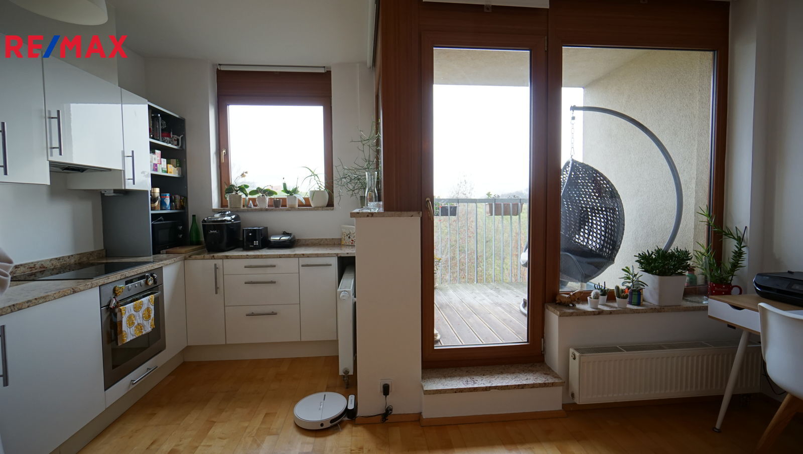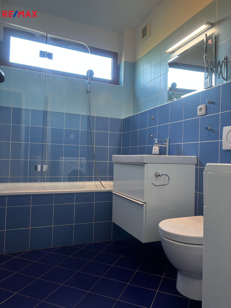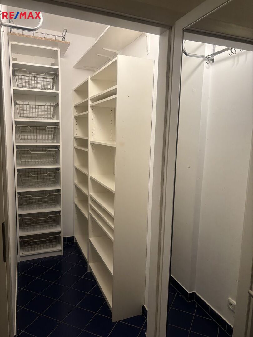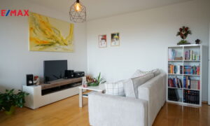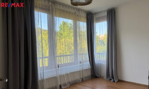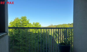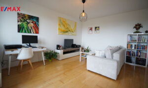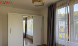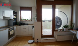 V bytě se nachází předsíň, ze které se vstupuje do koupelny, ta je vybavena vanou se sprchovým koutem a WC. Hlavní obytný prostor tvoří obývací pokoj s moderní kuchyňskou linkou, provedení bílý lak/vysoký lesk, která nabídne dostatek pracovního prostoru i pro náročné kuchaře/kuchařky, nechybí elektrická varná deska s digestoří, elektrická trouba, lednice s mrazákem a myčka. Z obývacího pokoje se vychází na čtvercovou krytou terasu s podlahou z exotického dřeva a krásným výhledem do zeleně přilehlé přírodní rezervace Skalka. V obývacím pokoji je knihovna, sedačka,konferenční stolek a stolek pod televizi. Ze vstupní předsíně se dále vstupuje do samostatné ložnice, kde pro dostatek úložného místa na oblečení slouží velká skříň. Součástí bytu je i samostatná šatna/komora.