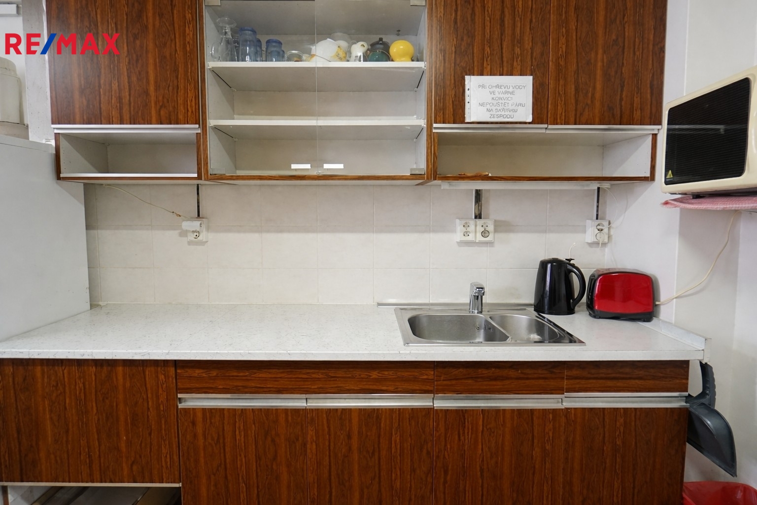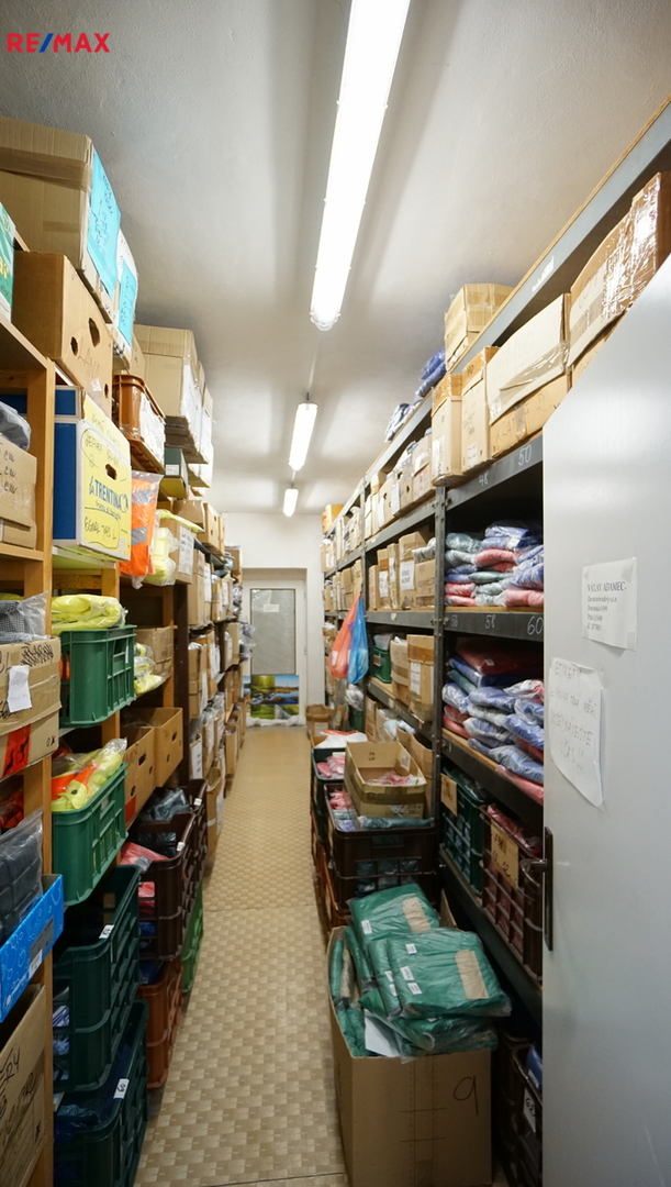 Nemovitost se nachází na hlavní ulici, v centru městské části Slivenec. Vchod do prodejny je přímo z ulice, do které jsou orientovány i dvě výlohy a prosklený vchod. Zázemí prodejny dnes tvoří čtyři, vzájemně propojené místnosti. Dvě menší (16m2 a 14,2) slouží jako sklady jsou bez oken a průchozí. Druhé dvě větší místnosti (45m2 a 43m2) s okny orientovanými do tiché slepé ulice lze využít jako kanceláře, dílnu apod. K dispozici je také kuchyňka, 2x wc s umyvadly.