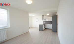 Byt vás přivítá prostorným obývacím pokojem s plně vybaveným kuchyňským koutem (lednice s mrazákem, varná deska, elektrická trouba, myčka nádobí, digestoř). Tento otevřený prostor o velikosti téměř 30 m² přirozeně vybízí k pohodovým večerům i klidným ránům s kávou. Přímý vstup na balkón o výměře 5,9 m² pak nabízí příjemné místo k odpočinku s výhledem do okolí.