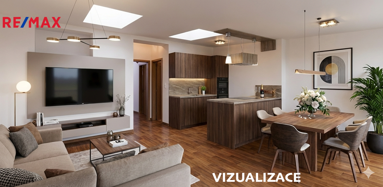 Klíčové parametry bytu: Celková plocha: 80,3 m² (byt 61,5 m² + terasa 18,8 m²) + sklep 3,0 m². Terasa je orientovaná do klidného, zeleného vnitrobloku a nabízí naprosté soukromí. Dispozice umožňuje i budoucí stavbu zimní zahrady a umístění vířivky. Na patře se nachází pouze dvě bytové jednotky. Byt je vyklizený a připravený k okamžitému nastěhování.