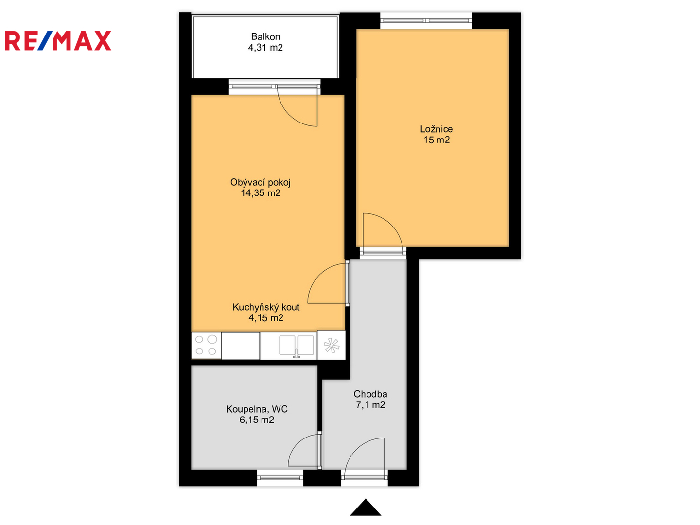 Nabízíme k prodeji osobitý byt 2+kk v osobním vlastnictví o celkové ploše 51 m² vč. balkonu v 1. patře bez výtahu v cihlovém bytovém domě z roku 2009.