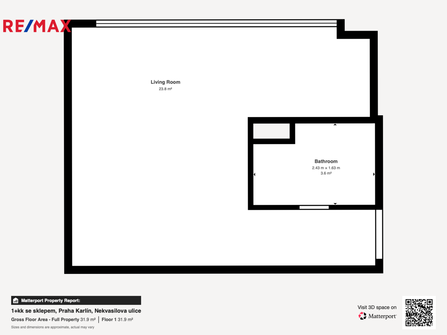 Byt o ploše 27,4 m² se vyznačuje velmi efektivním uspořádáním. Hlavní předností je velkoformátové okno orientované na východ, které do prostoru přivádí maximum přirozeného světla a nabízí otevřený výhled.