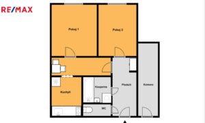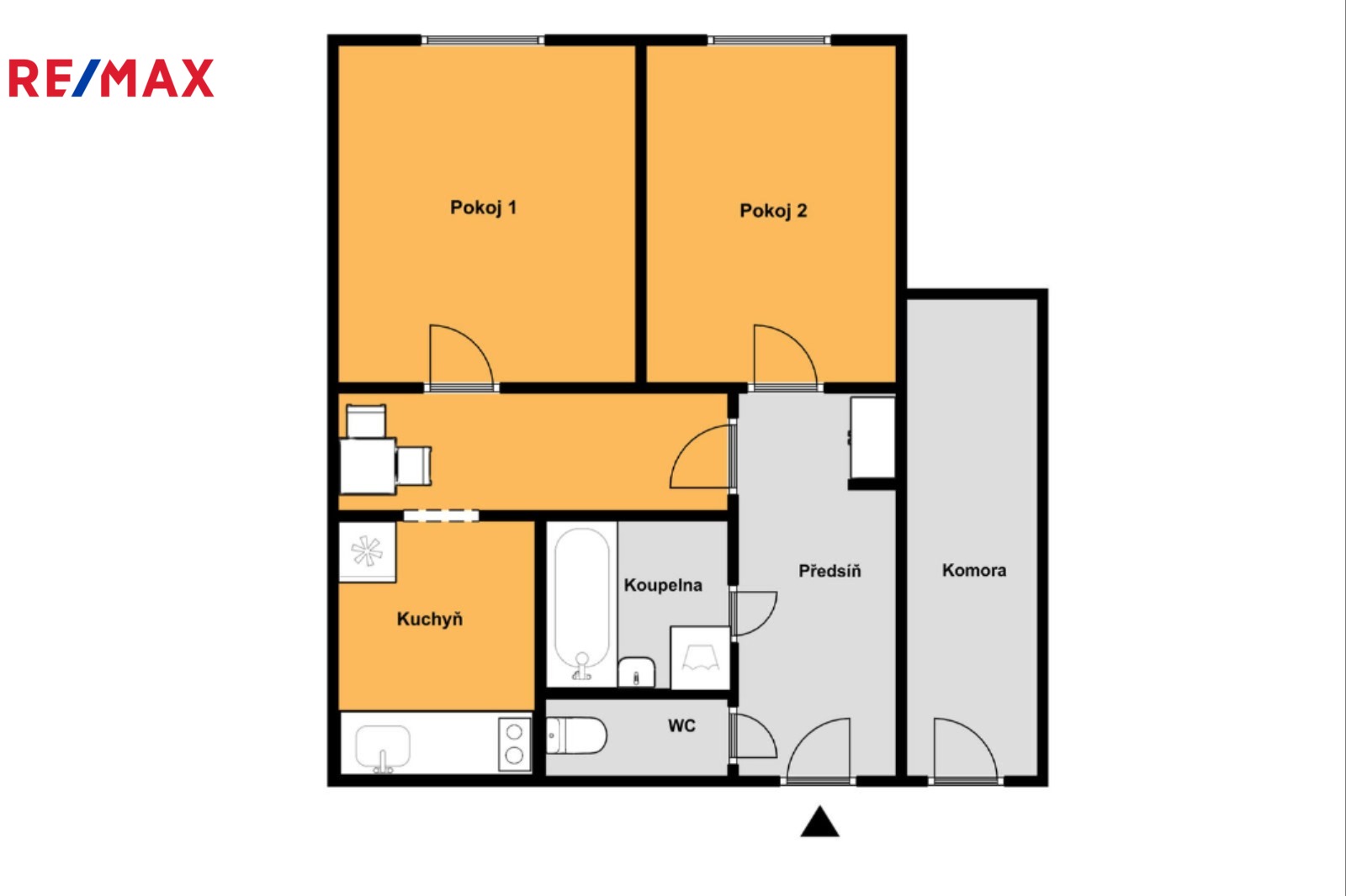 Dispozici bytu tvoří obývací pokoj (16,4m2), samostatná ložnice (10,28m2) oba pokoje orientovány na západ. K bytu patří komora se samostatným vchodem, o výměře 5,11m2, která je umístěná hned vedle vstupní předsíně bytu a lze ji jednoduchou stavební úpravou připojit k bytu.