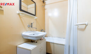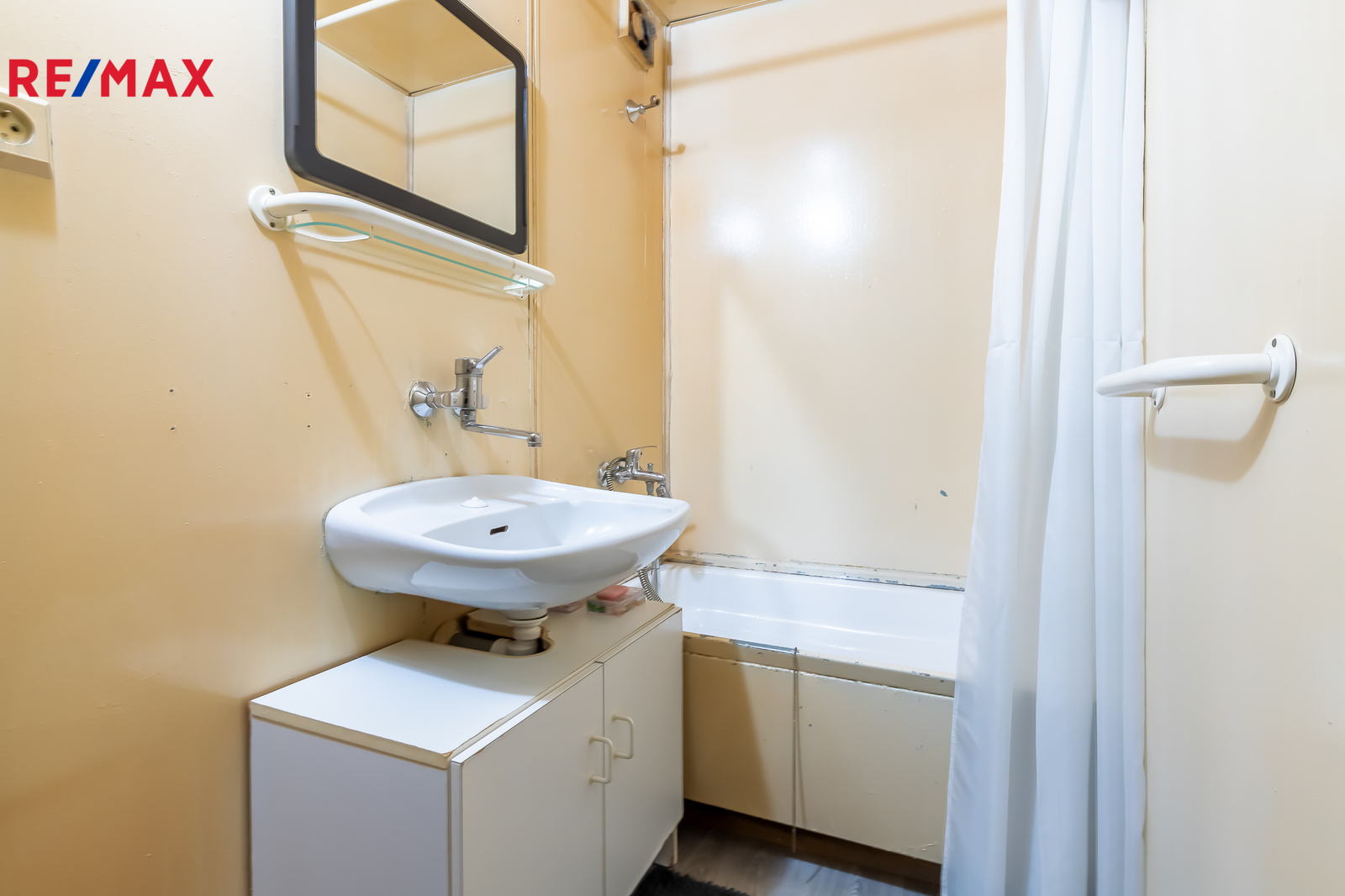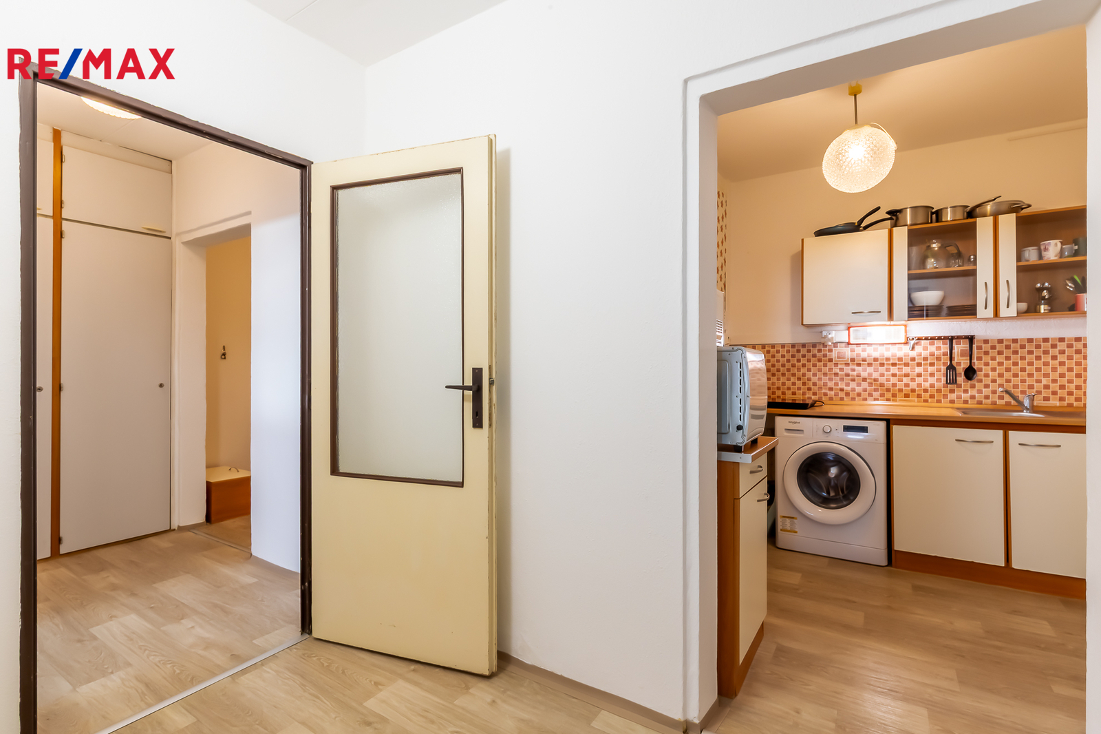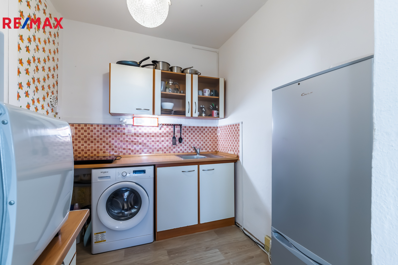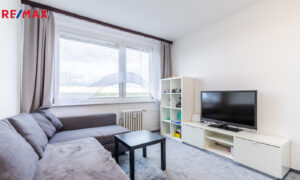 V současné době je původní dispozice 2+kk upravena lehkou příčkou na 2+1, tak že obývací pokoj je samostatným pokojem a kuchyňský kout je zvlášť. Kuchyňský kout je vyřešen velmi prakticky, díky čtvercového půdorysu nabízí možnosti řešení kuchyňské linky do tvaru L nebo U. Byt je udržovaný, v původním stavu, koupelna a wc v umakartovém jádře, wc samostané. Na podlahách linoleum a koberce. Okna plastová. K bytu patří i právo užívání společného balkonu pro 4 byty, přístupného ze společné chodby.