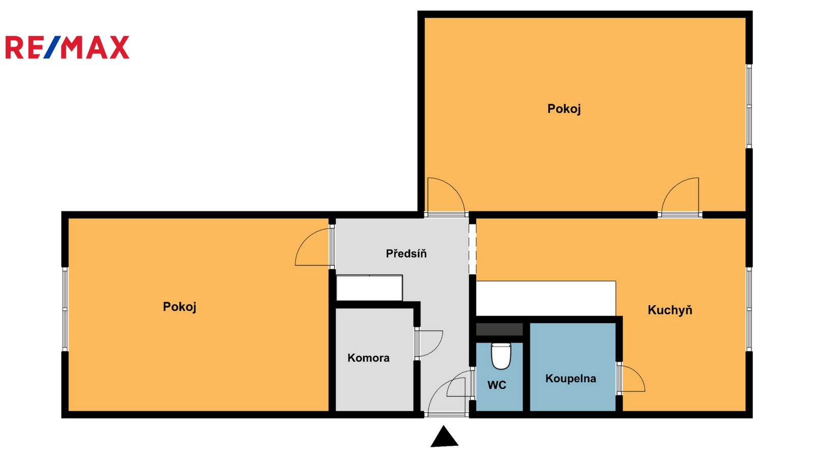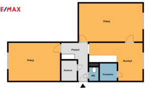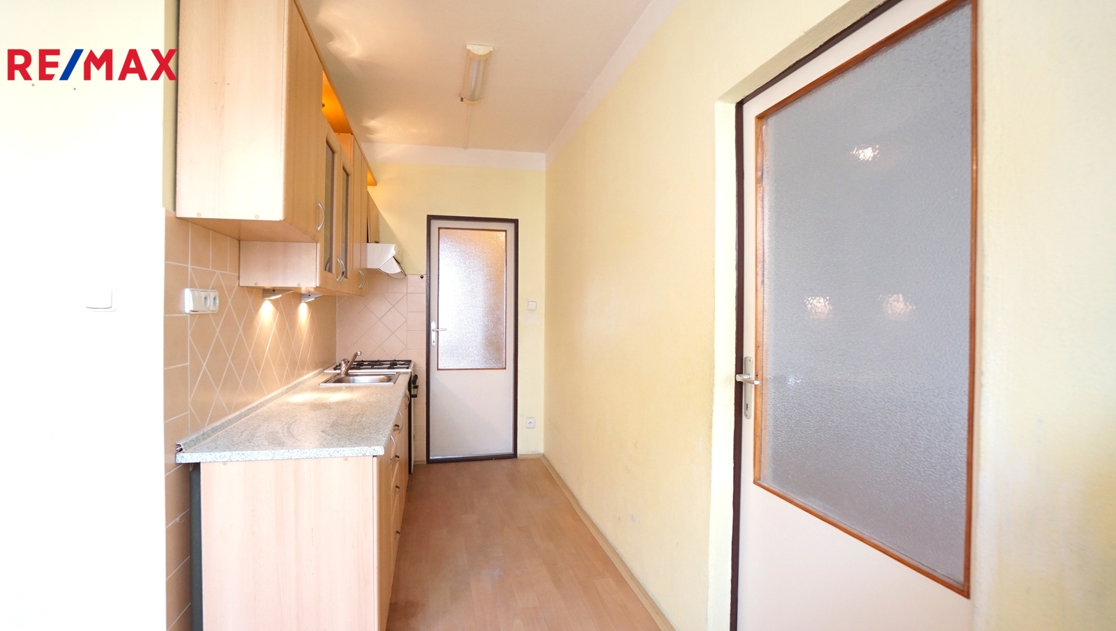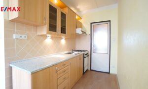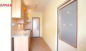 V kuchyni je původní linka, je zde vstup do koupelny s vanou a umyvadlem. Z prostorného obývacího pokoje je možné jít přímo do kuchyně nebo do předsíně. Ložnice je umístěna na druhou stranu a má vstup pouze z předsíně, kde je umístěna vestavěná skříň. Z předsíně je možné vstoupit také do komory a na oddělené WC.
