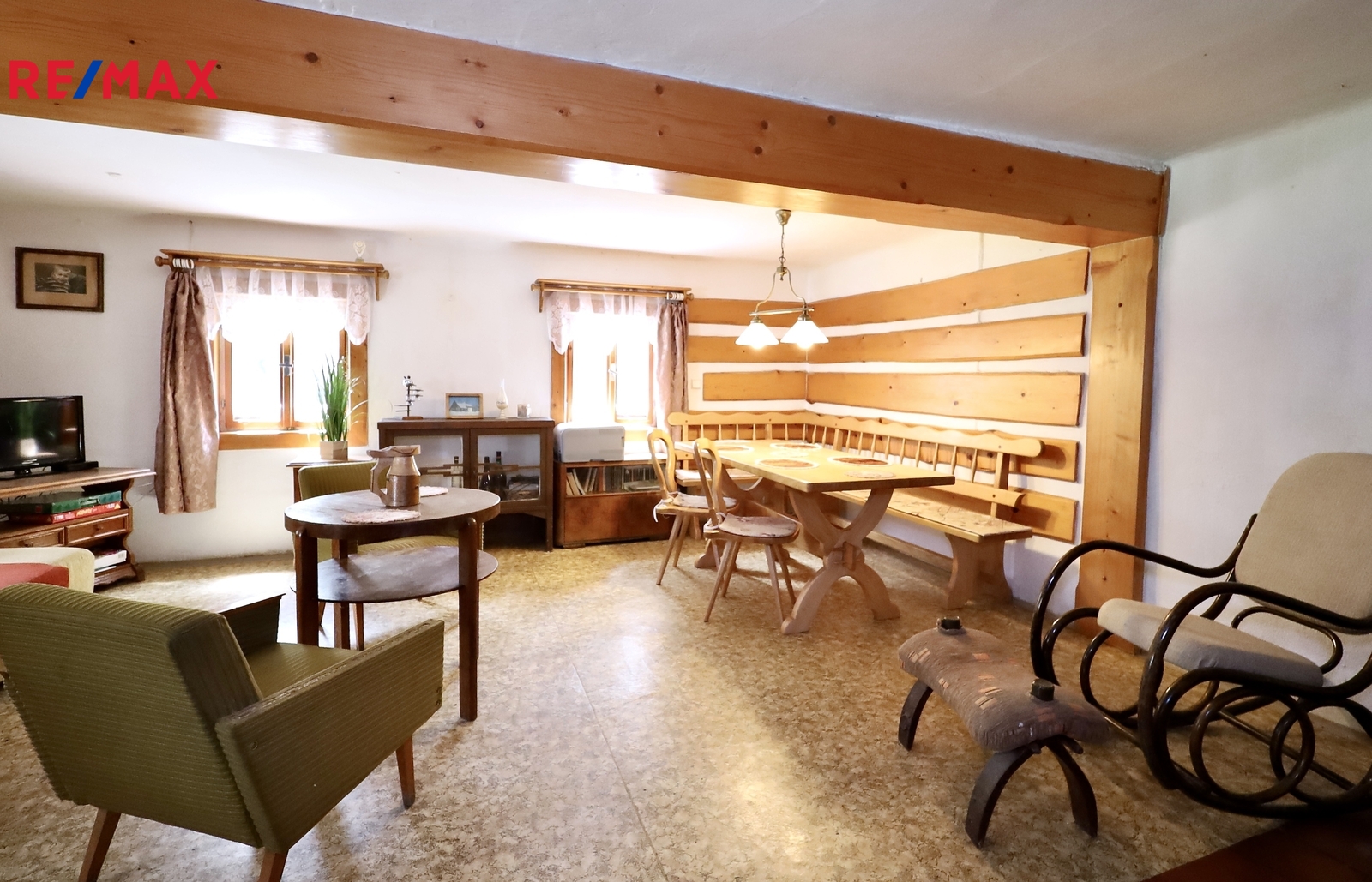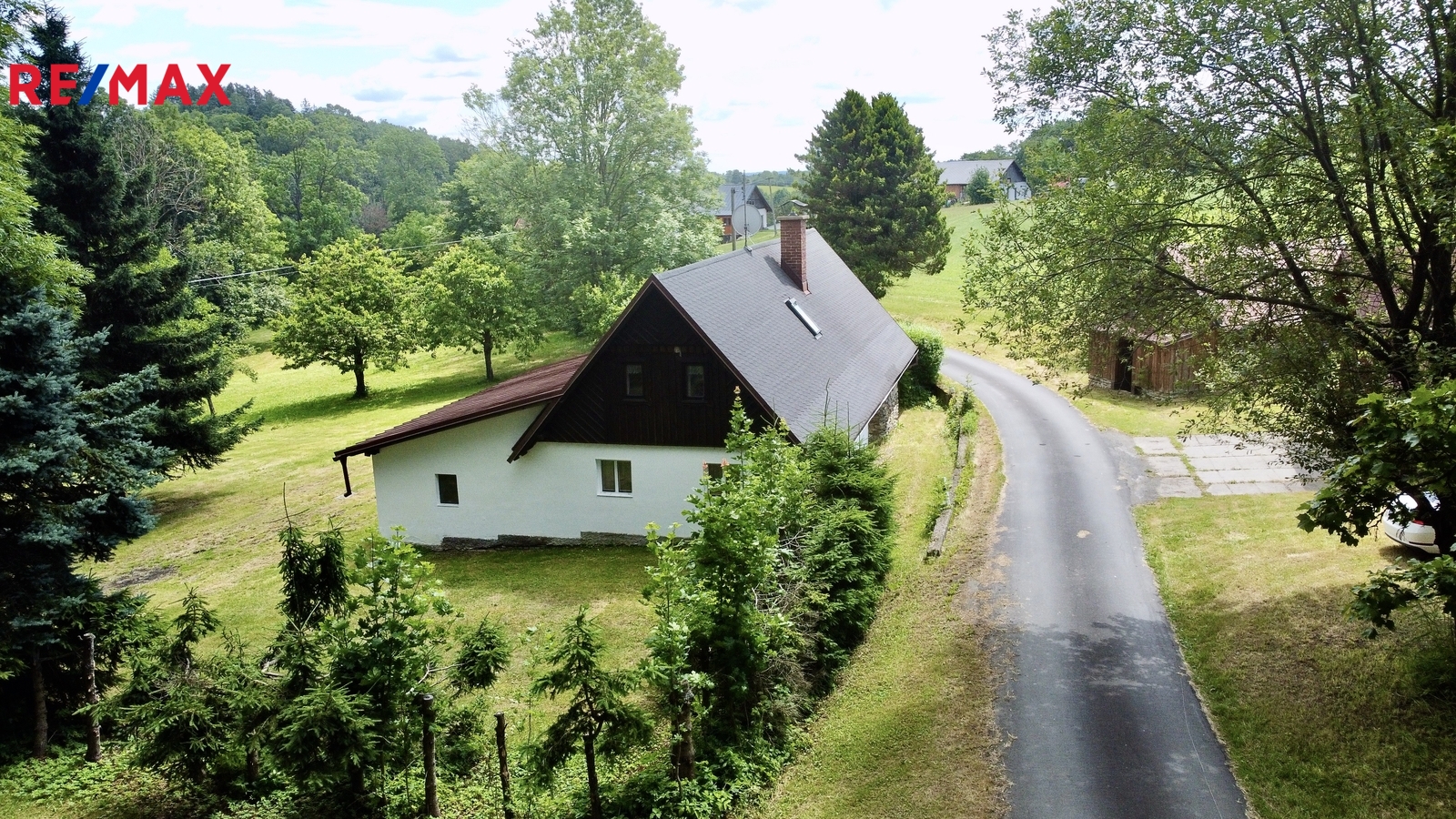 V této podkrkonošské vesnici vám nabízíme k prodeji poloroubenou chalupu o celkové ploše 170 m2, která je umístěna na okraji obce, s pozemky téměř 7 tisíc metrů čtverečních, zajišťující dostatek soukromí.