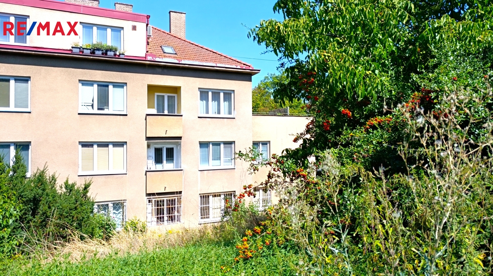 U kuchyně je malý balkon. K bytu náleží sklepní kóje v suterénu a také polovina motogaráže, která je umístěna v domě, ale vchází se zvenčí.