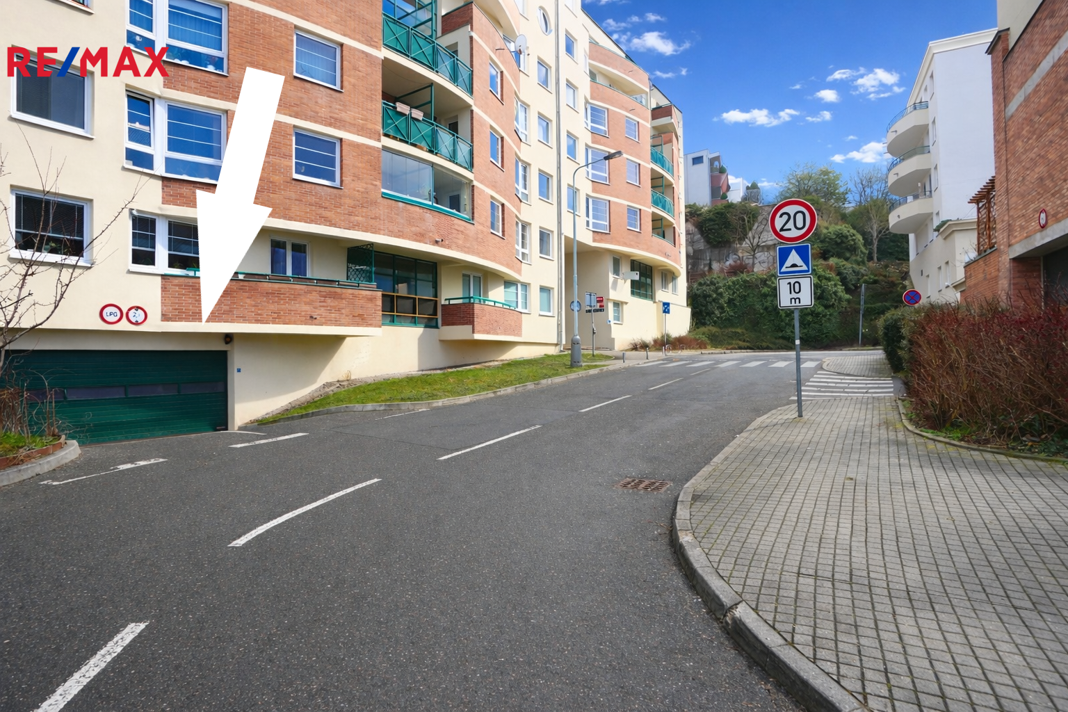 Garážové stání je situováno v oblasti s příjemným bezbariérovým přístupem. Vjezd zajištují el. vrata, která se otvírají skrze vyvolání na dané telefonní číslo. Stání se nachází ve smíšené stavbě z roku 1996, která je ve velmi dobrém stavu.
