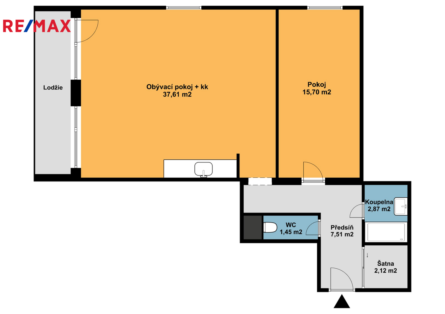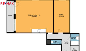 Celková výměra bytu je 67,2 m2, lodžie má výměru 6,8 m2, sklep 2 m2.