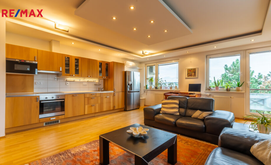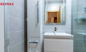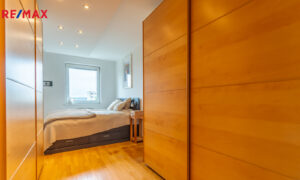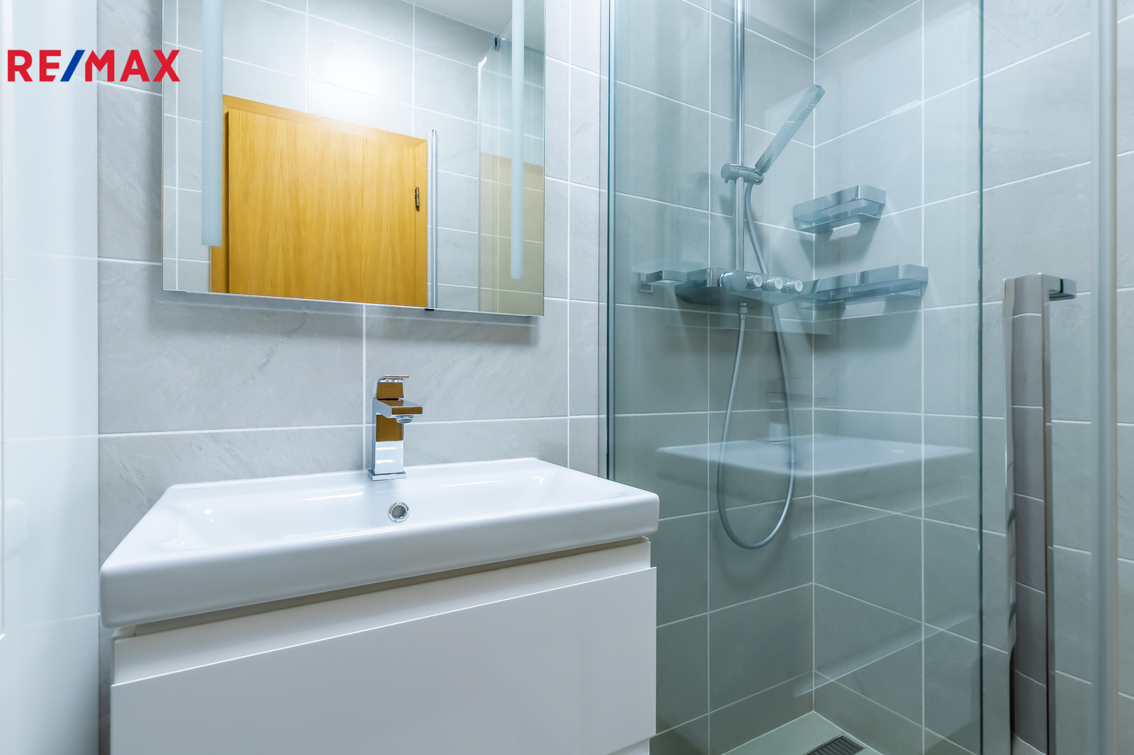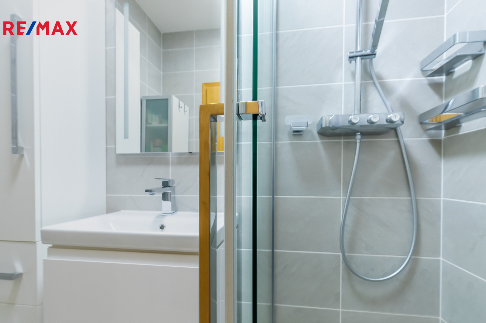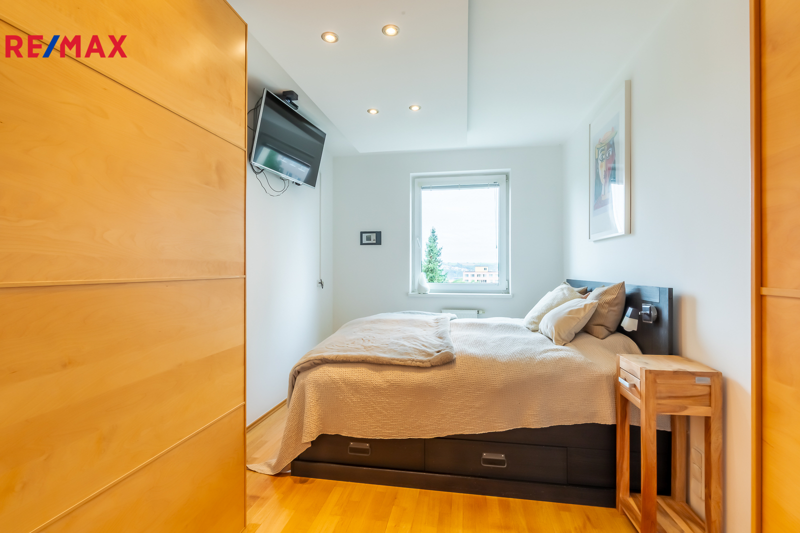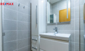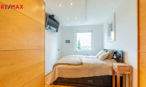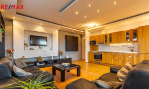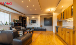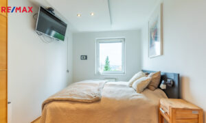 Interiér bytu byl částečně rekonstruován, je zde nová koupelna, toaleta a nainstalované klimatizační jednotky v obývacím pokoji a ložnici.