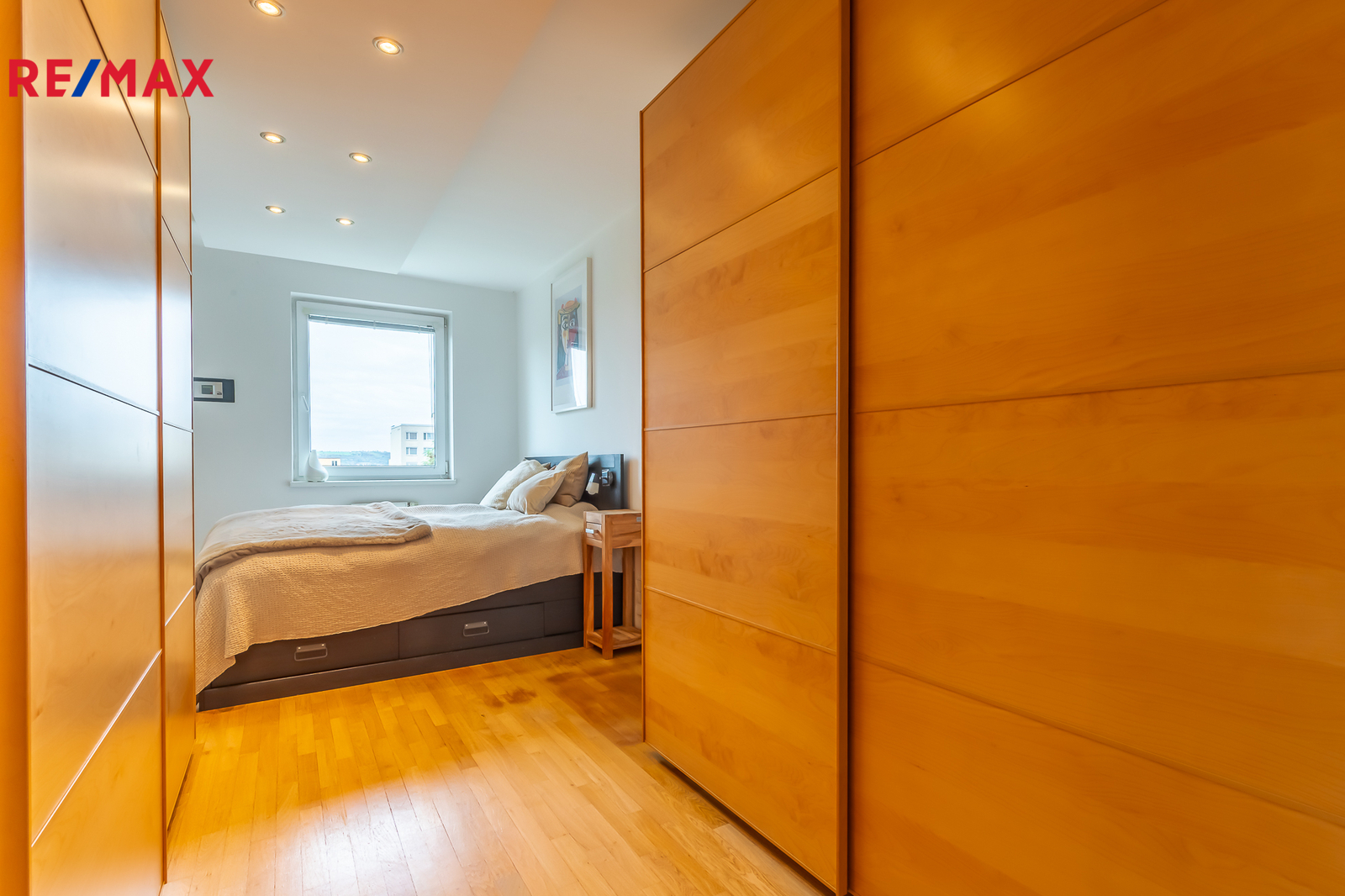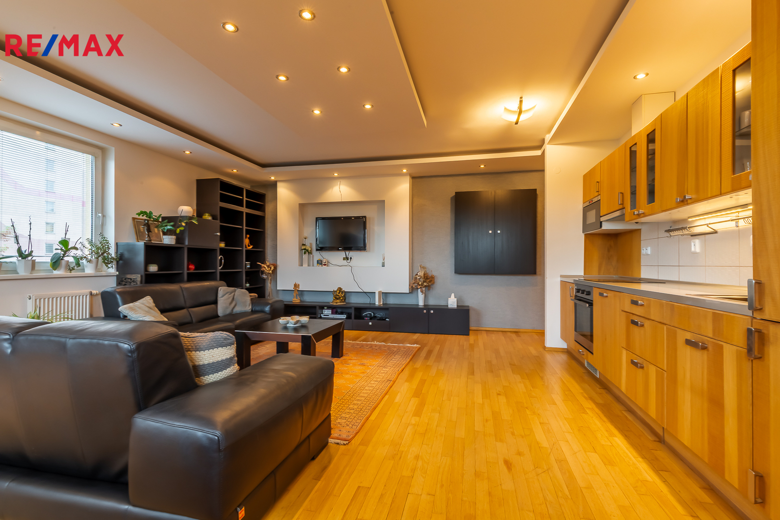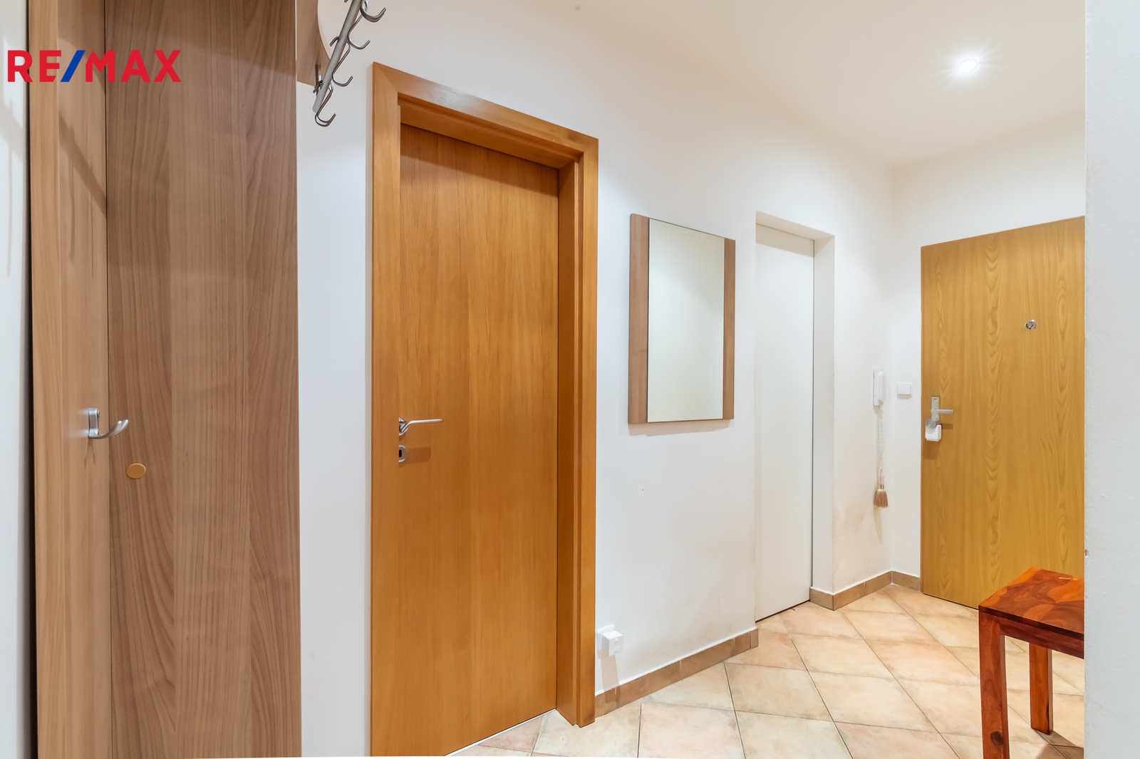 V zastoupení majitele nabízím k prodeji byt 2+kk se sklepem a lodžií ve čtvrtém nadzemním podlaží domu s výtahem z roku 2003. K bytu je možné dokoupit samostatnou garáž s elektřinou, která se nachází v přízemí téhož domu a není zahrnuta v ceně. Okolo domu je soukromé parkoviště se závorou, přes kterou se vjíždí ke garáži i domu.