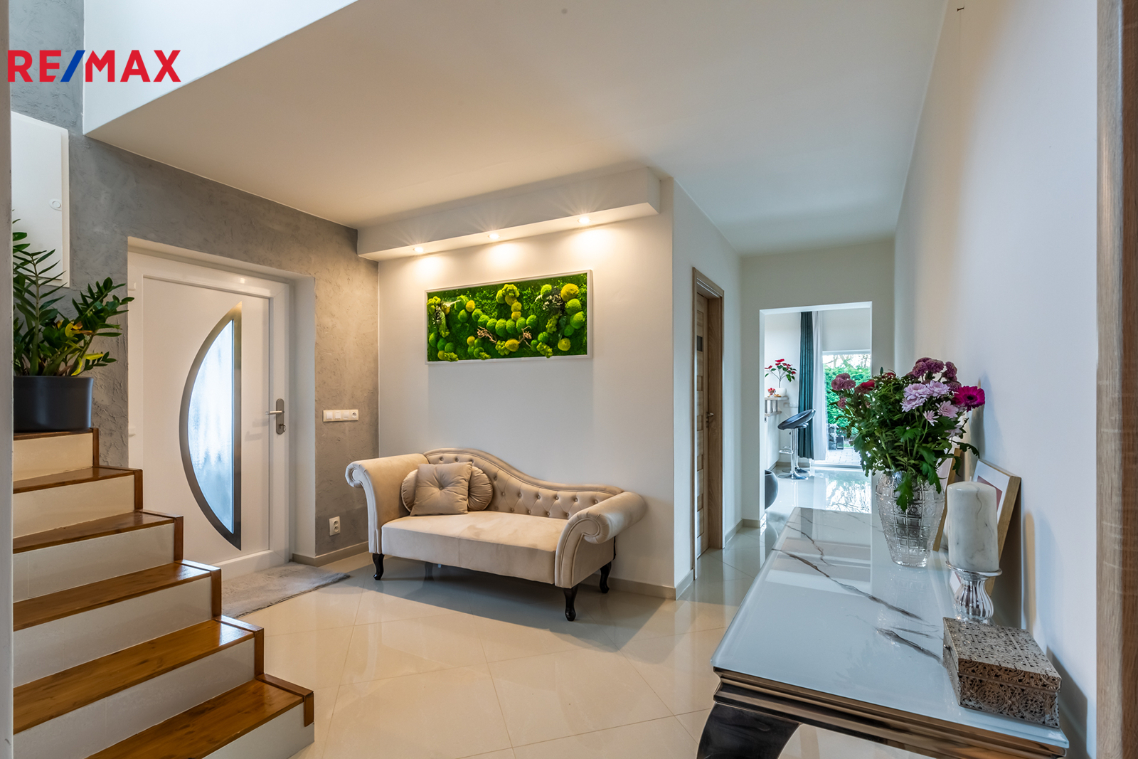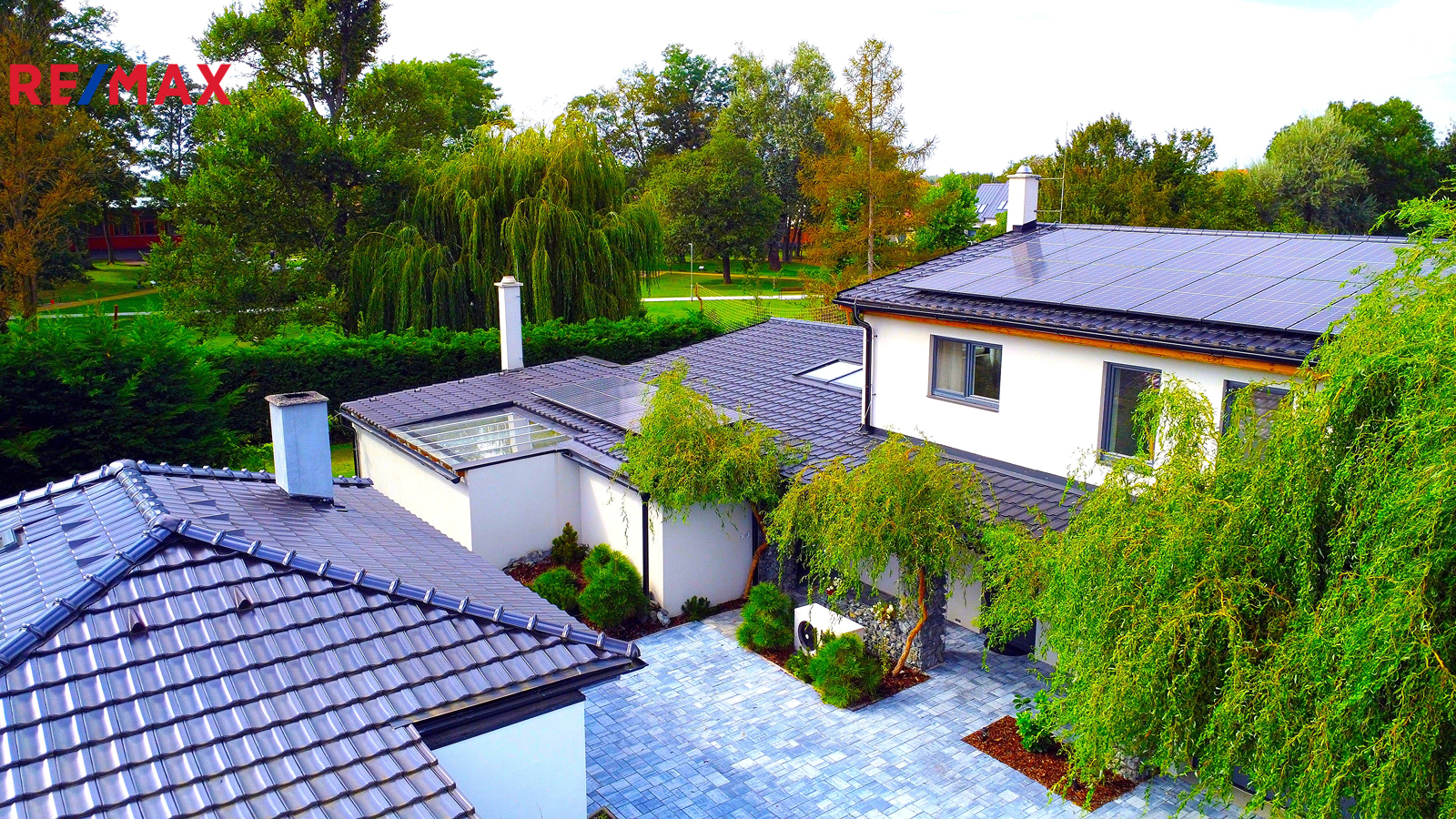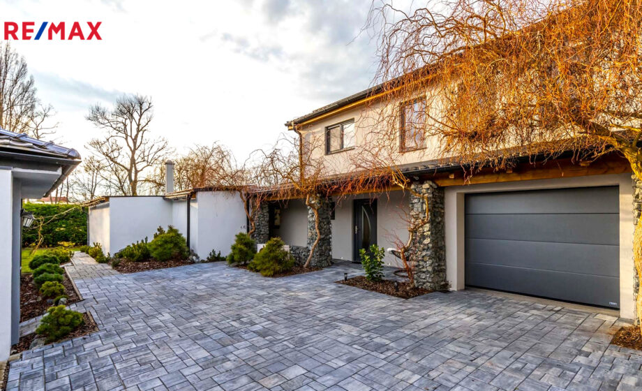 Prodej nadčasového domu s vlastním wellnessem, domem pro hosty a garáží v okrese Praha-Východ.
