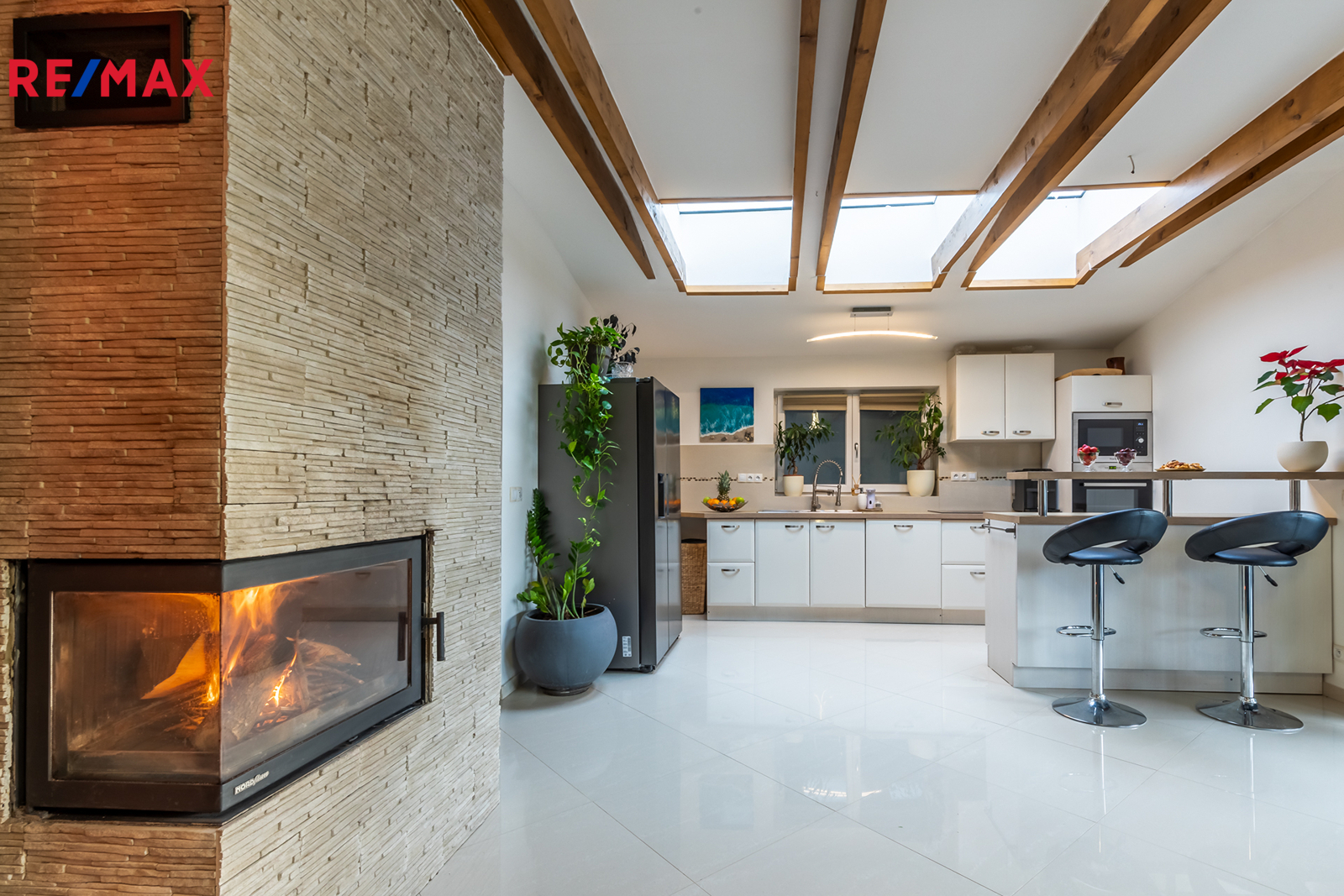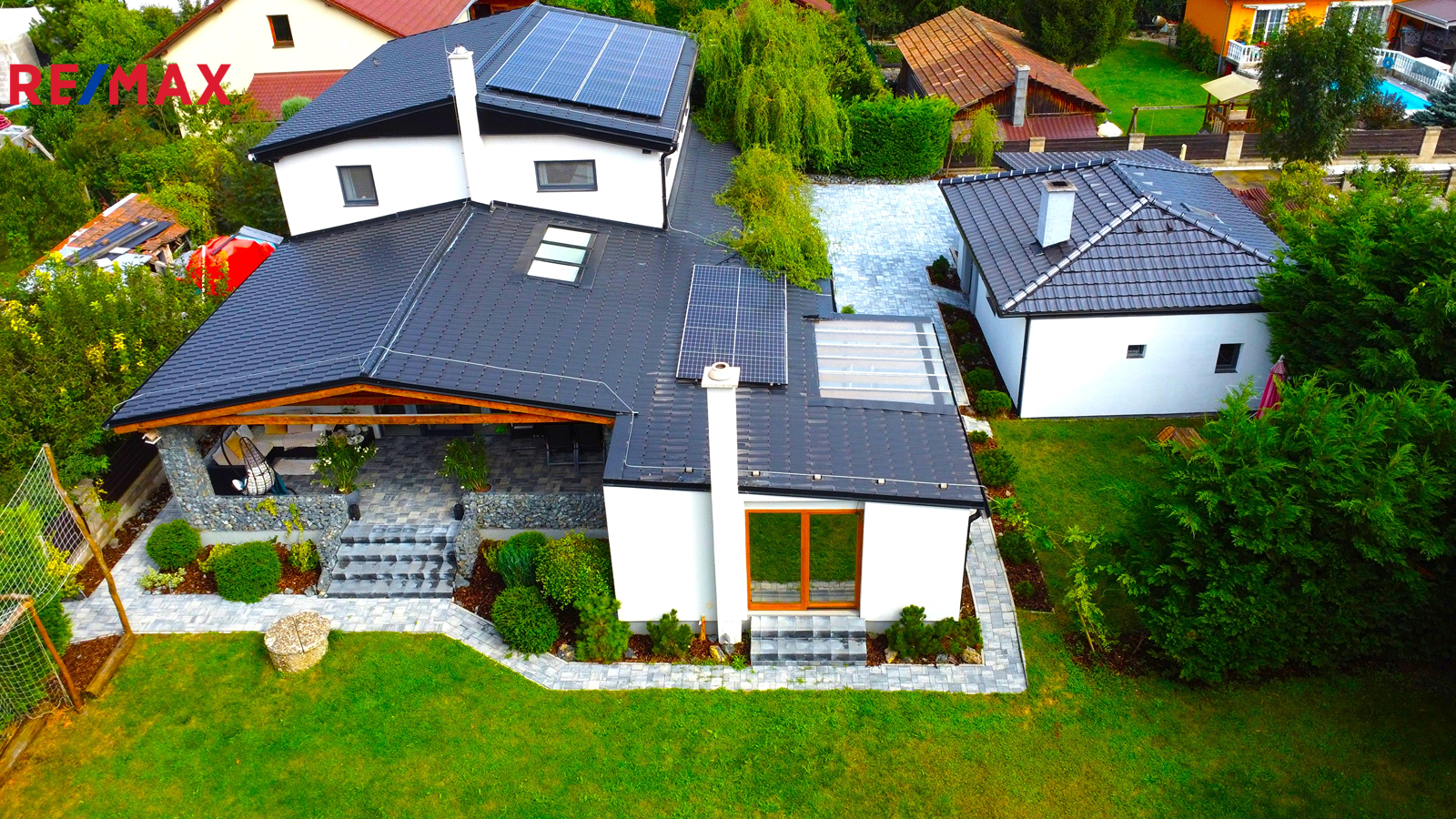 Mám zájemVe výhradním zastoupení majitele si vám dovolujeme nabídnout exkluzivní nízkoenergetický náročný zateplený cihlový patrový rodinný dům kolaudovaný v roce 2018 o dispozici 6+KK vč. 21 solárních panelů, vlastní wellness částí, vyhřívanou garáží a domem pro hosty o dispozici 2+kk o celkové výměře 311 m² a zahradou o výměře 799 m² v obci Libiš, která je vzdálená 15 minut jízdy autem od hranice hlavního města Prahy.