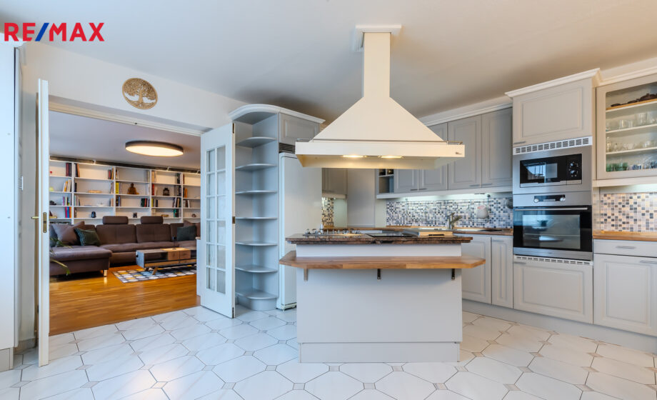 V kuchyni je možnost trojího způsobu vaření – plynový sporák, sklokeramická deska a gril. Nad kuchyňským ostrůvkem je digestoř, dále je zde lednice s mrazákem, vestavěná elektrická trouba, vestavěná mikrovlnná trouba a myčka. V obývacím pokoji jsou krbová kamna. Na zemi je dřevěná podlaha a/nebo dlažba. V bytě je vlastní plynový kondenzační kotel zajišťující vytápění a ohřev vody.
