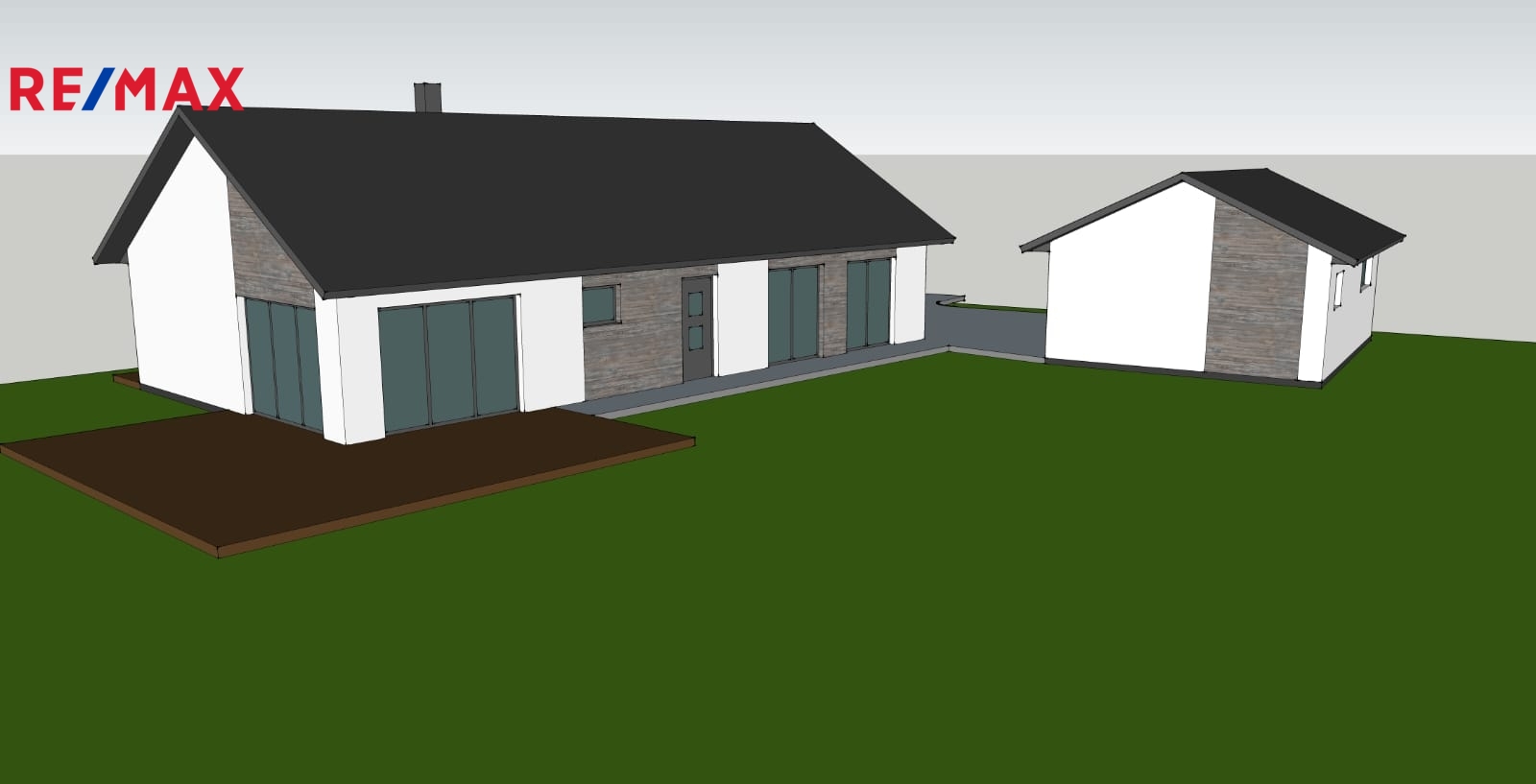 U domu je rozestavěná garáž s prostorem pro dva automobily a dílnu či sklad na zahradní nářadí.