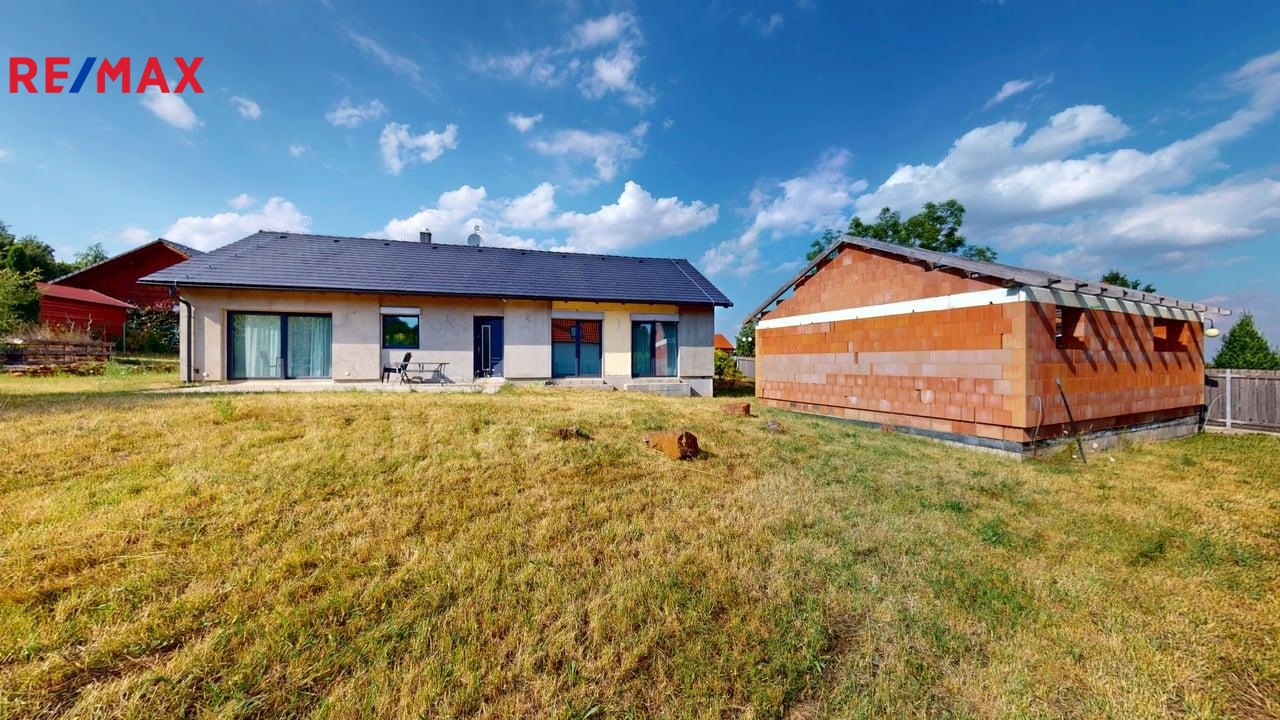 Dům je kolaudován, garáž a terénní úpravy ještě ne. U domu zbývá dodělat fasáda a uvnitř objektu jsou též nedodělky, které je potřeba dotáhnout. Garáž je rozestavěna, nedokončena a taktéž terénní úpravy a vjezdová brána. Více informací při prohlídce.