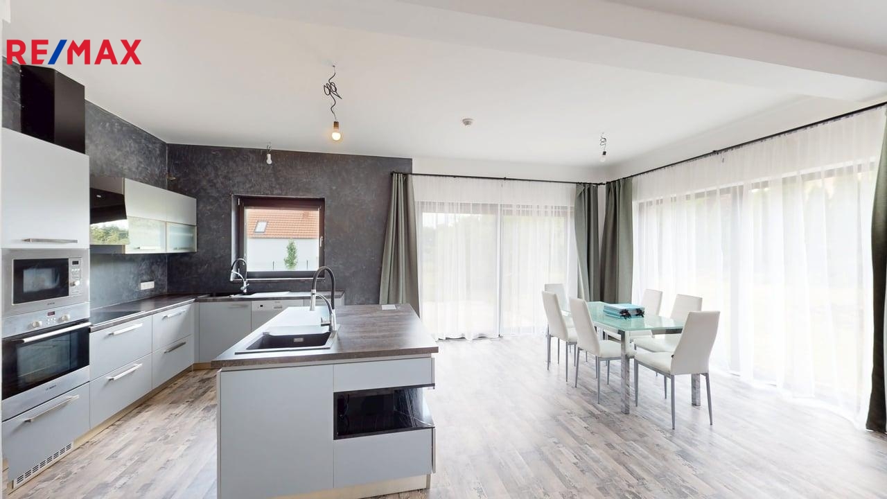 Mám zájemNabízíme prodej rodinného domu z roku 2017 o dispozici 4+kk s rozlehlou zahradou 1092 m2, Zichovec, KP Slaný. Dům je koncipován jako bungalov.