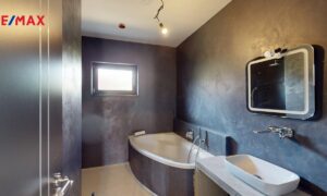 Na podlahách je položena vinylová podlaha, v koupelně je designová betonová stěrka. V obývací místnosti je příprava pro krbová kamna, která dokreslí pohodu domova v zimních večerech. V domě je inteligentní domácnost LOXONE.