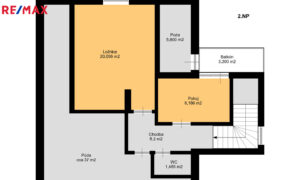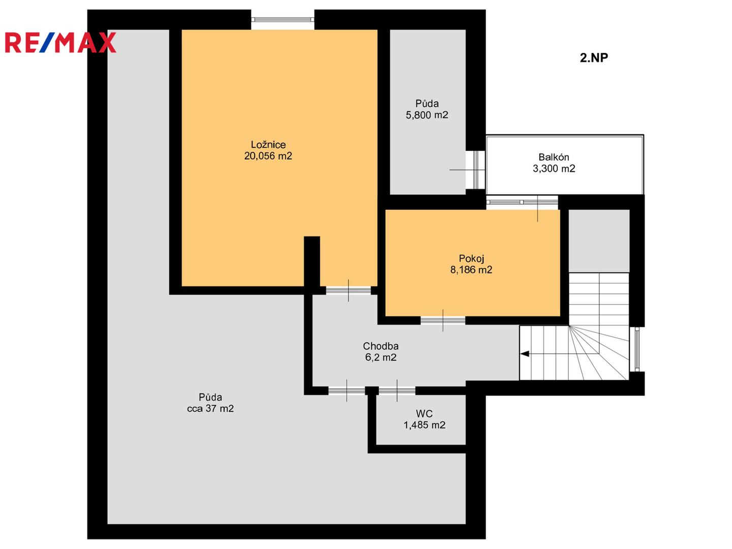 Obytná část – cca 117 m² + balkon 3,3 m² (rozdělena do dvou pater)