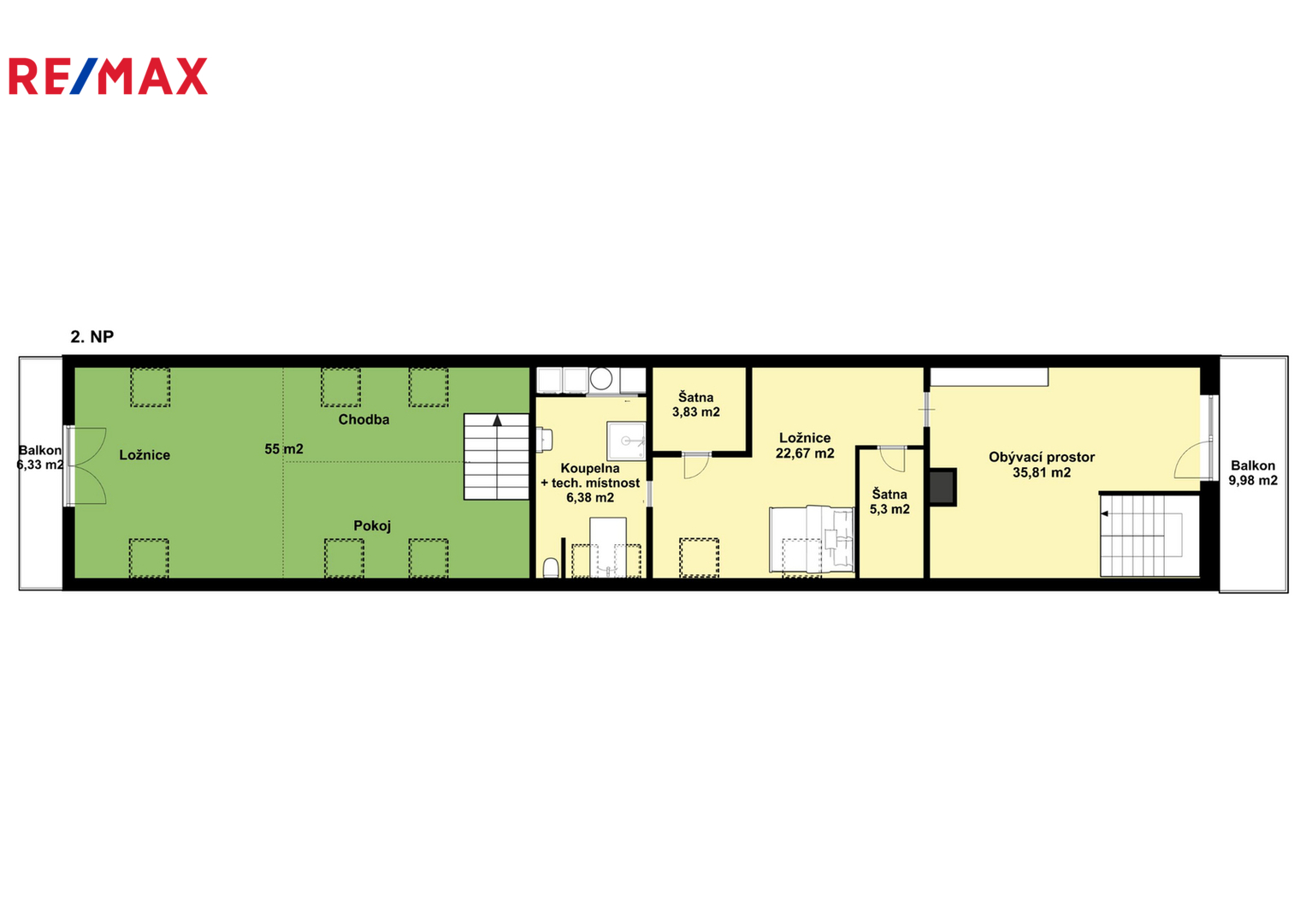 Bytová jednotka č.2 je po kompletní rekonstrukci. Dispozičně se jedná o 4+1 rozdělen do dvou pater se dvěma koupelnami s celkovou plochou cca 180 m². Součástí je i soukromý balkon s výhledem do zahrady. Byl zde promyšlen každý detail. Vytápění a ohřev vody je řešeno tepelnými čerpadly (voda-vzduch a vzduch-vzduch). Dále v rámci vytápění – podlahové teplovodní vytápění, krbová kamna a radiátory. Vstup na zahradu zajištuji velká francouzská okna, kde ve vnitřní části je zabudována el. rohož proti rosení. Další velkou výhodou je systém IGLU (Jde o ideální způsob izolace podlahy proti vlhkosti a odvětrání). Kamna mají saní vzduchu z venkovního prostoru. Komín je troj komorový. Hned u francouzského okna je připraven vývod na mobilní klimatizaci. V suterénu je připraven prostor pro soustavu čističky/filtrace vody. Dále je v suterénu připraven vývod kabelu vč. prostoru pro baterie na solární panely. V celé horní části je vzduchový systém pro chlazení či vytápění, který je napojen na tepelné čerpadlo (vzduch-vzduch)