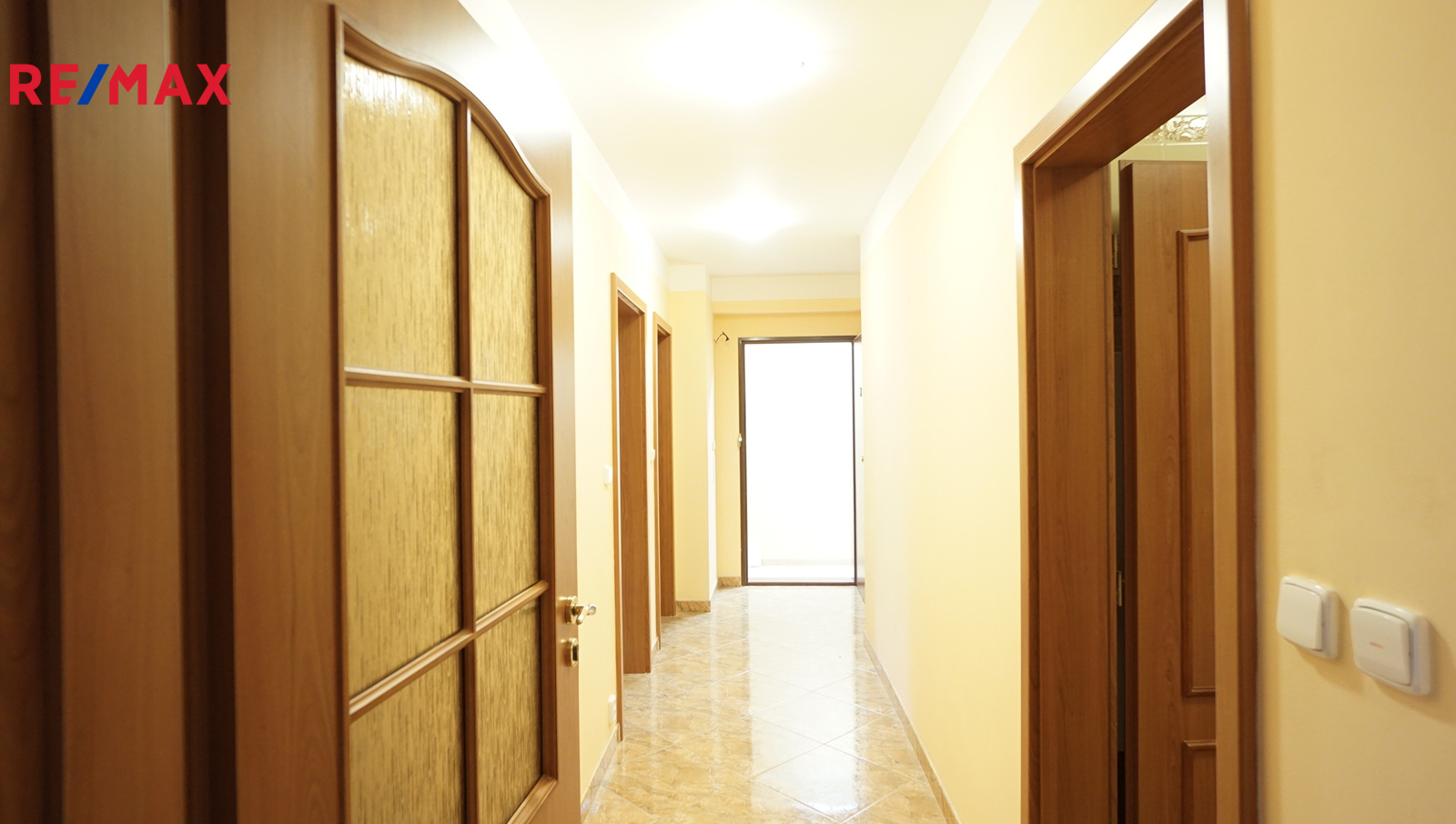 Vstupuje se z chodby a k dispozici je pět místností včetně kuchyně a koupelny.