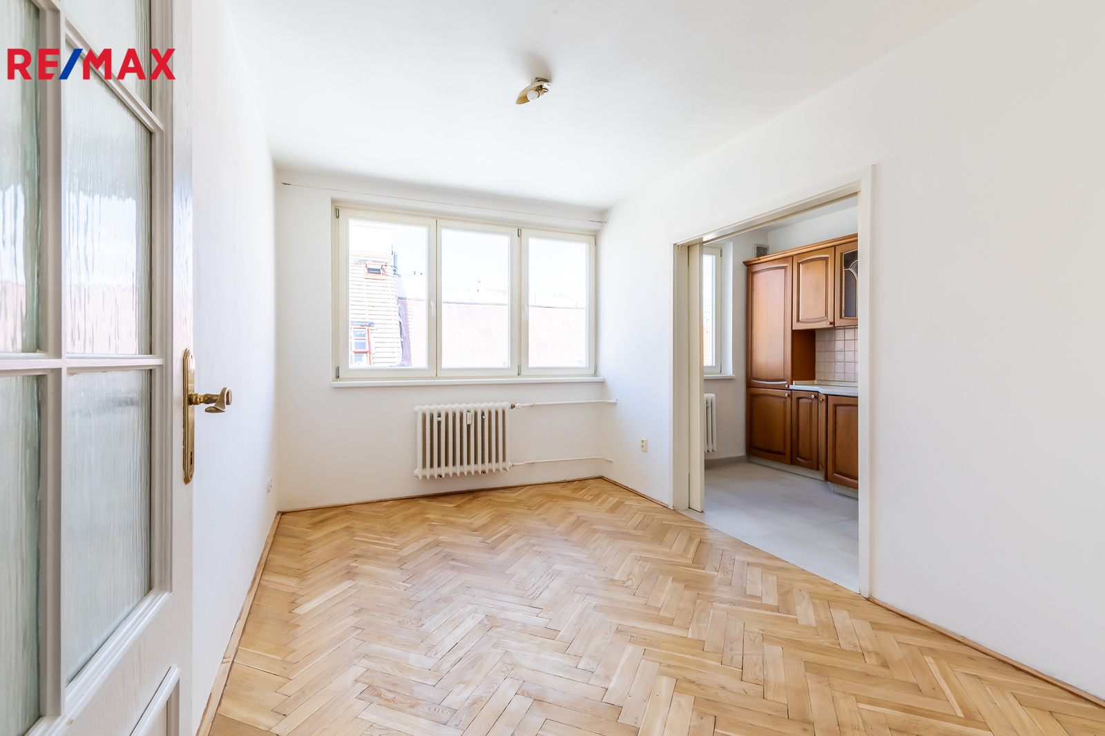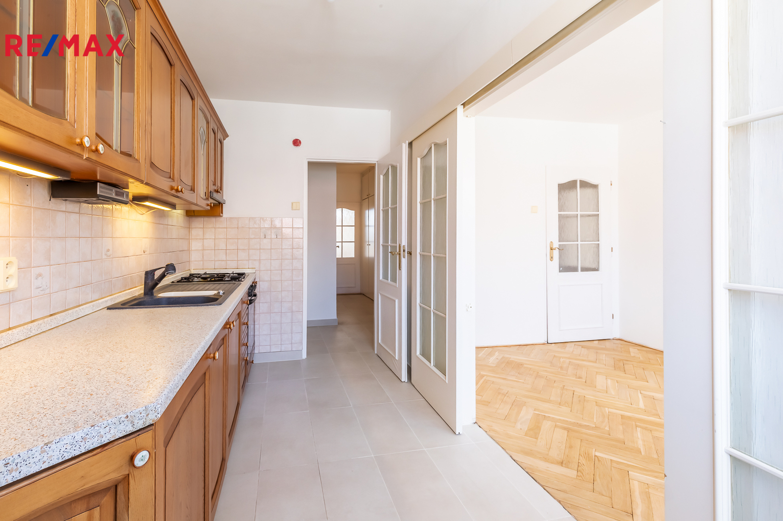 Mám zájemNabízíme k dlouhodobému pronájmu byt 3+1 o rozloze 56 m2 + 2 lodžie 6 m2 v 7. patře činžovního domu s výtahem v blízkosti Letné v ul. Heřmanova v pražských Holešovicích. V bytě je prostorná chodba se vstupem do koupelny, samostatné WC a do komory, dále kuchyň s posuvnými dveřmi do obývacího pokoje a dvě ložnice. Byt je ve velmi dobrém stavu po rekonstrukci (koupelna, WC, parkety a dlažba). Vnitřní dveře jsou starší, ale zachovalé. Kuchyňská linka je opravená. V bytě je původní vestavěná skříň. Kromě vestavěných spotřebičů v kuchyňské lince (trouba, sporák) je k dispozici ještě pračka. V kuchyni není myčka, ale je možno ji dodatečně instalovat. Ostatní vybavení resp. nábytek je třeba dokoupit.