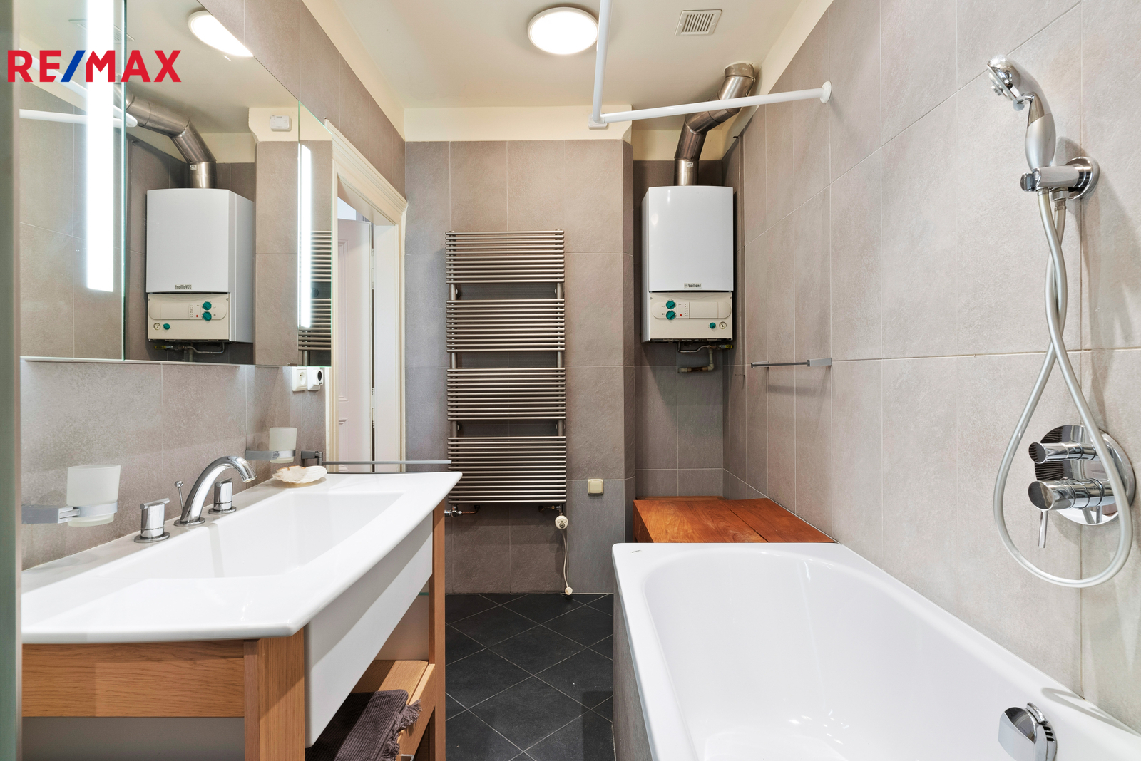 Po vstupu do bytu vás přivítá prostorná předsíň, ze které vedou samostatné vstupy do všech hlavních místností. Najdete zde kuchyni s jídelním koutem, dva neprůchozí pokoje, koupelnu a samostatnou toaletu. Kuchyň je plně vybavena spotřebiči včetně sporáku, trouby, lednice s mrazákem, pračky a mikrovlnné trouby. Obývací pokoj i ložnice jsou zařízeny sedací soupravou, postelemi, skříněmi a komodami. V koupelně je vana. Toaleta je oddělená. Vytápění i ohřev vody zajišťuje vlastní plynový kotel umístěný přímo v bytě.