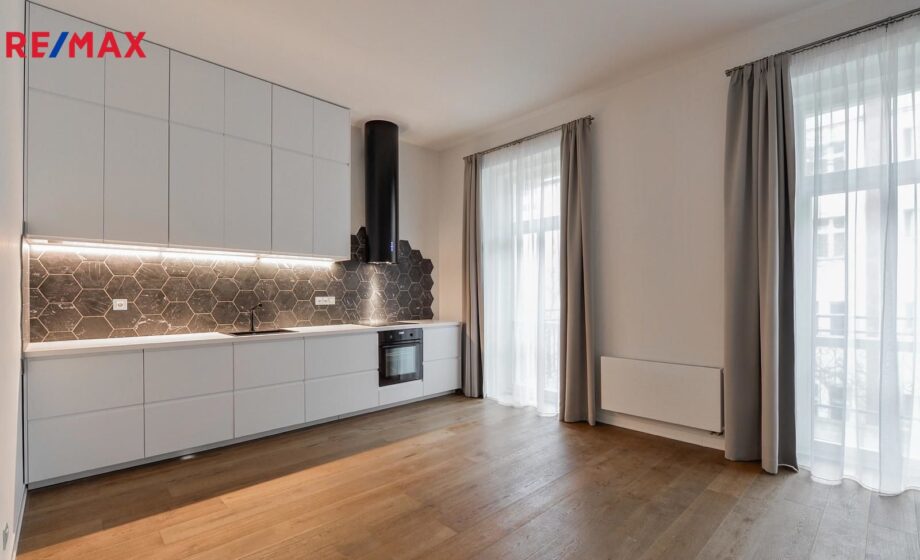 Interier bytu tvoří prostorný obývací pokoj s plně vybavenou kuchyňskou linkou, dvě samostatné ložnice, vstupní hala, dvě koupelny se sprchovým koutem a toaletou. Náleží k němu technická komora a balkon s výhledem do zeleně vnitrobloku. Vybavení a zřizovací předměty jsou ve vysoké kvalitě: designový nábytek, dřevěné podlahy, bezpečnostní vstupní dveře, francouzská okna apod. Vytápění je v domě řešeno centrálně. Elektroměr bude převeden na budoucího nájemníka. Měsíční nájemné je 50 000,- Kč a zúčtovatelné měsíční zálohy na služby jsou 6000,- Kč. Kauce na zařízení a vybavení bytu činní 80 000,- Kč. Poptávající klient je srozuměn s úhradou provize pro realitní kancelář ve výši jednoho měsíčního nájmu plus DPH. Pro další informace nebo sjednání termínu prohlídky prosím kontaktujte níže uvedeného makléře nabídky.