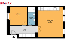 Obývací pokoj s kuchyňským koutem má na zemi parkety, okna jsou dřevěná. Kuchyňská linka je vybavena spotřebiči Whirpool (varná deska, trouba, myčka, lednice, mrazák) a digestoří Elica. Oddělená ložnice má okno do vnitřního traktu. V předsíni je velká vestavěná skříň. Koupelna má šedé velkoformátové obklady, které jsou doplněny černým topným žebříkem, skleněným sprchovým koutem, bílým umyvadlem a toaletou. Celková výměra bytu je 51 m2.
