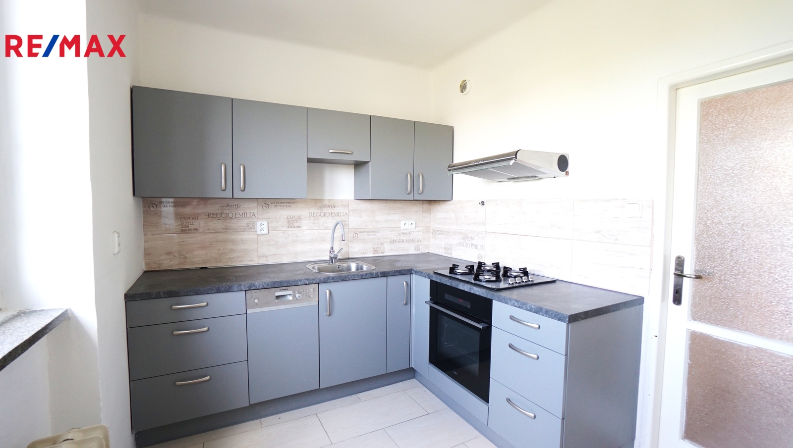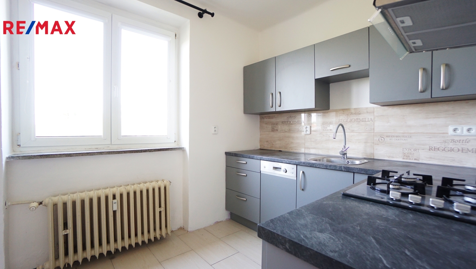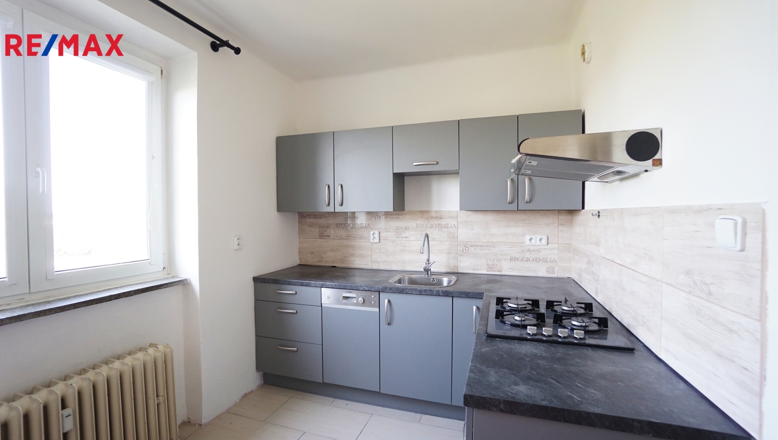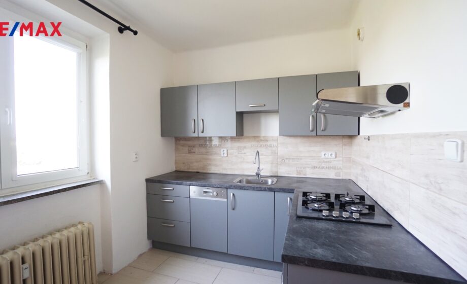 Byt má dvě samostatné místnosti a kuchyni. V kuchyni je moderní kuchyňská linka s myčkou, plynovým sporákem, elektrickou troubou, nerezovým dřezem a digestoří s filtrem. Do kuchyně bude dodána lednice a mrazákem. V kuchyni na zemi je dlažba.