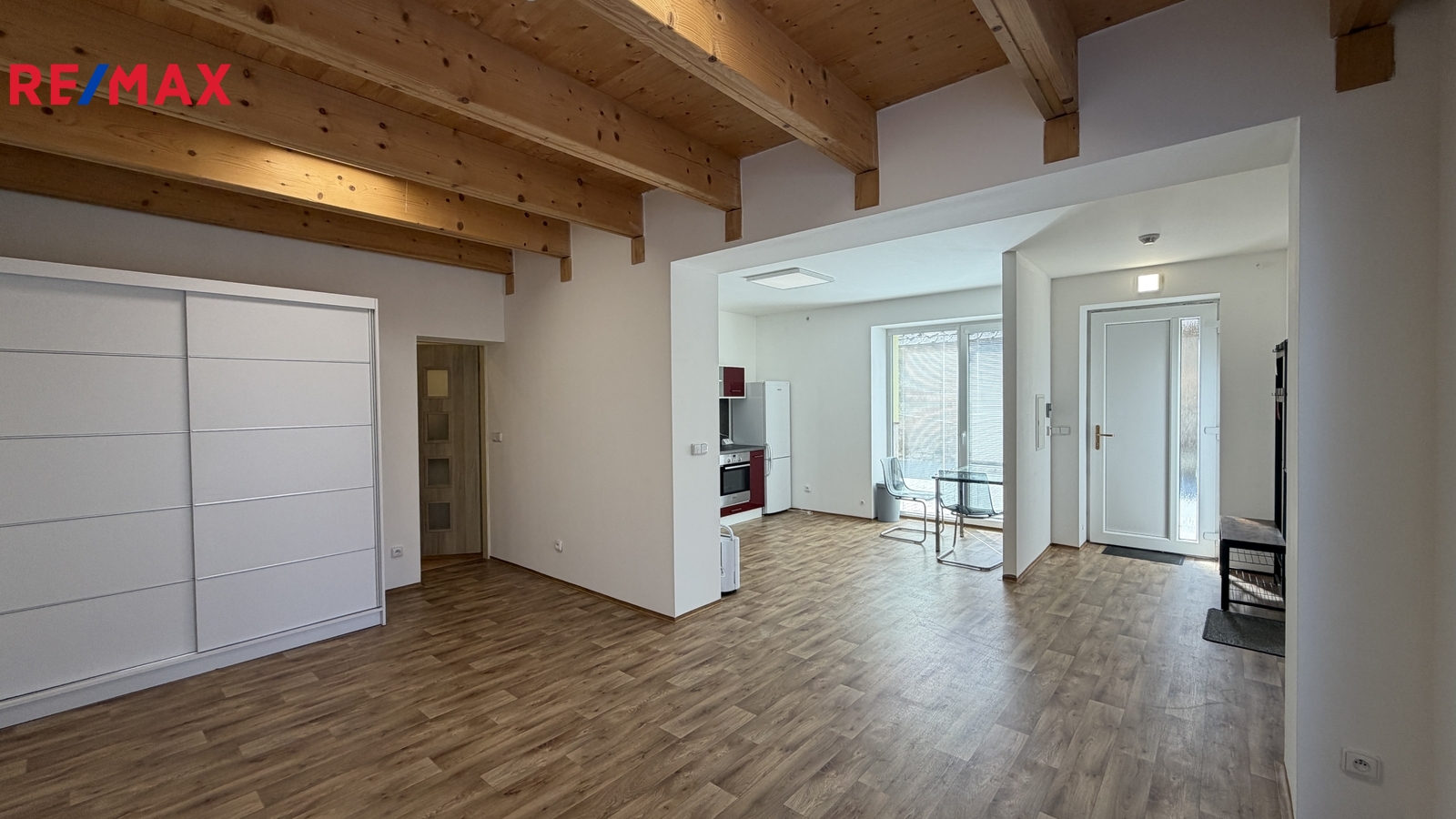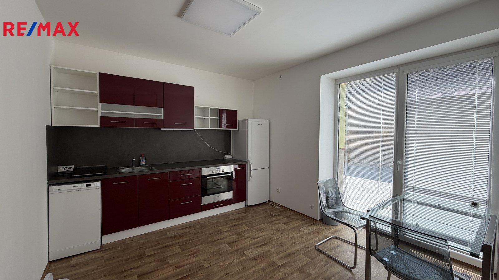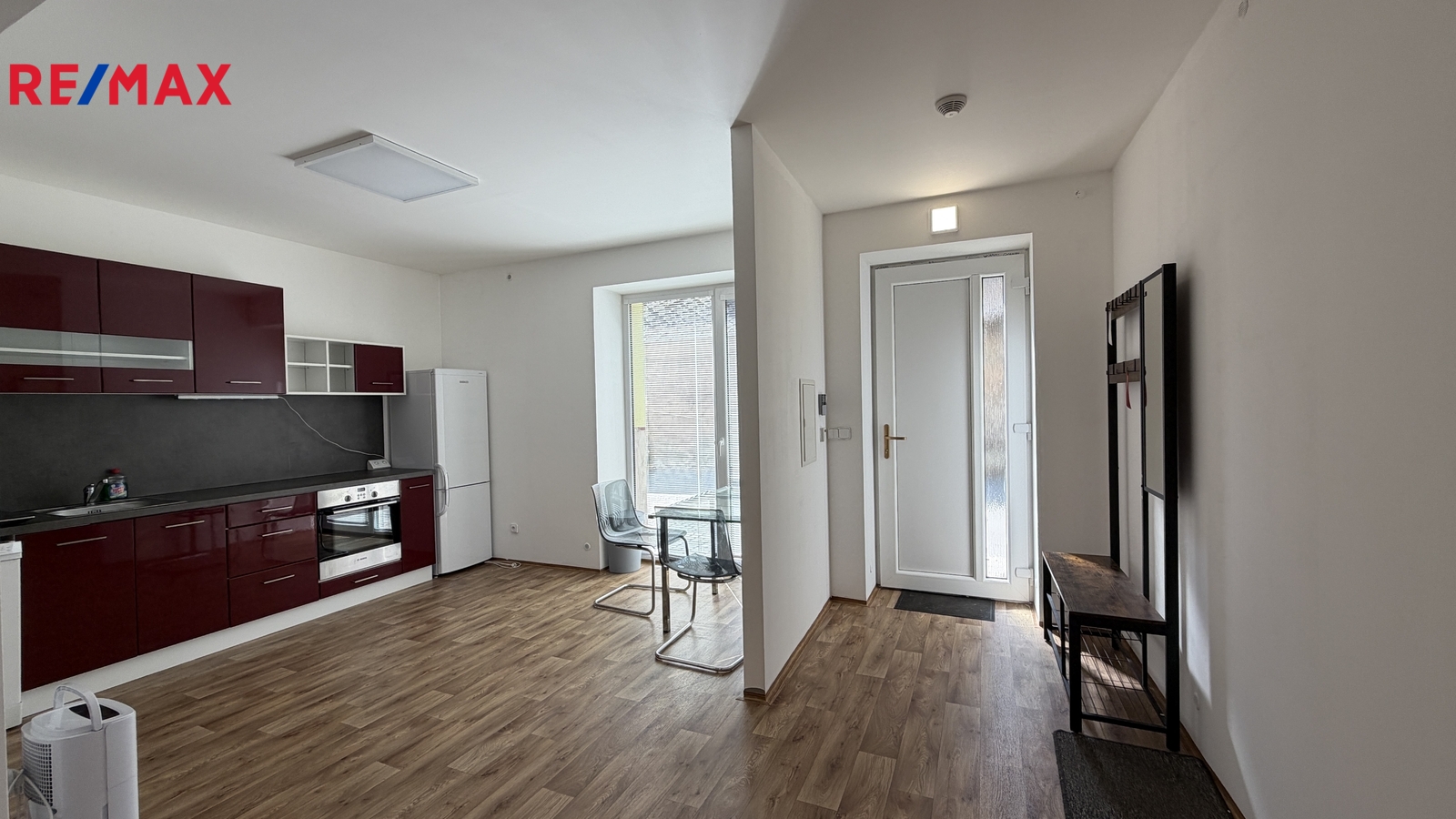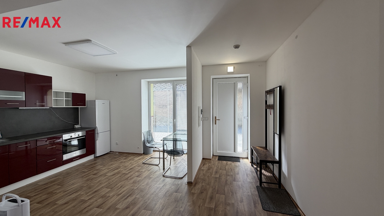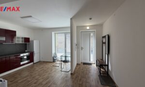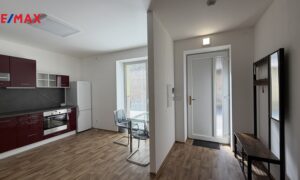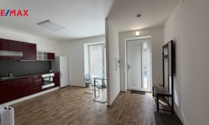 Velkou výhodou je parkování na pozemku za bránou (v ceně). Topení je podlahové. Vybaveno kuchyňskou linkou, jídelním stolem, židlemi, skříní a pračkou.
