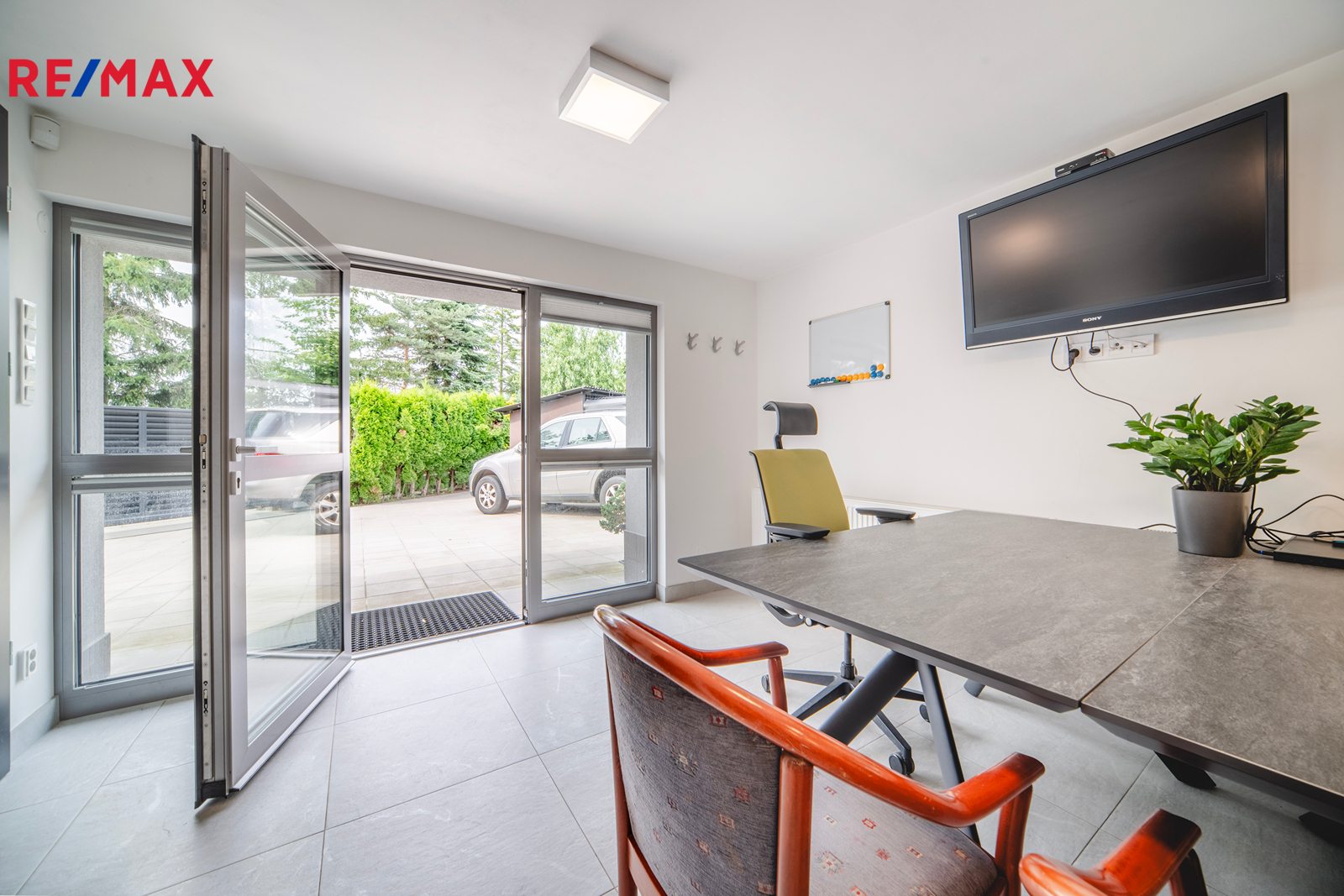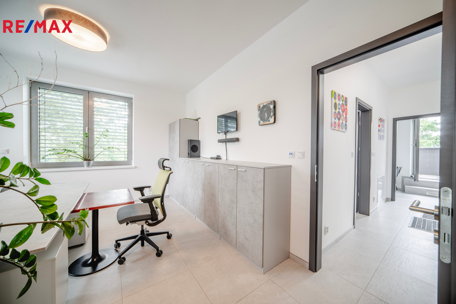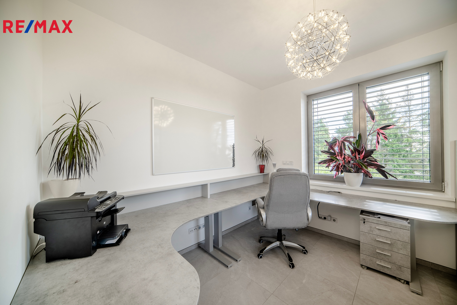 K pronájmu nabízíme výjimečně řešený rodinný dům v klidné a dobře dostupné části Jesenice u Prahy, který je uzpůsoben pro kancelářské nebo podnikatelské účely. Objekt je plně vybaven technicky i provozně a nabízí komfortní zázemí pro reprezentativní činnost, menší tým, poradenskou firmu nebo kombinaci kanceláří a zázemí (např. sklad, relaxační prostor, zahrada, jednací zóna).
