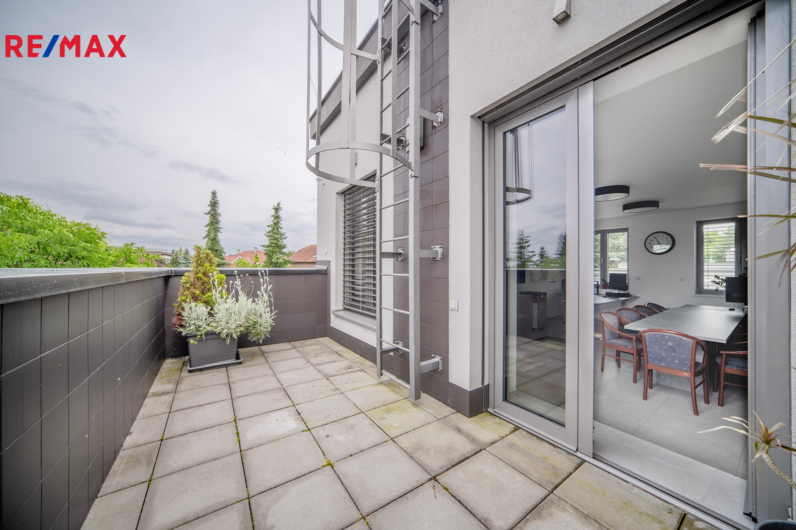 • Tři terasy: 12,1 m² + 8,6 m² + 10,8 m²