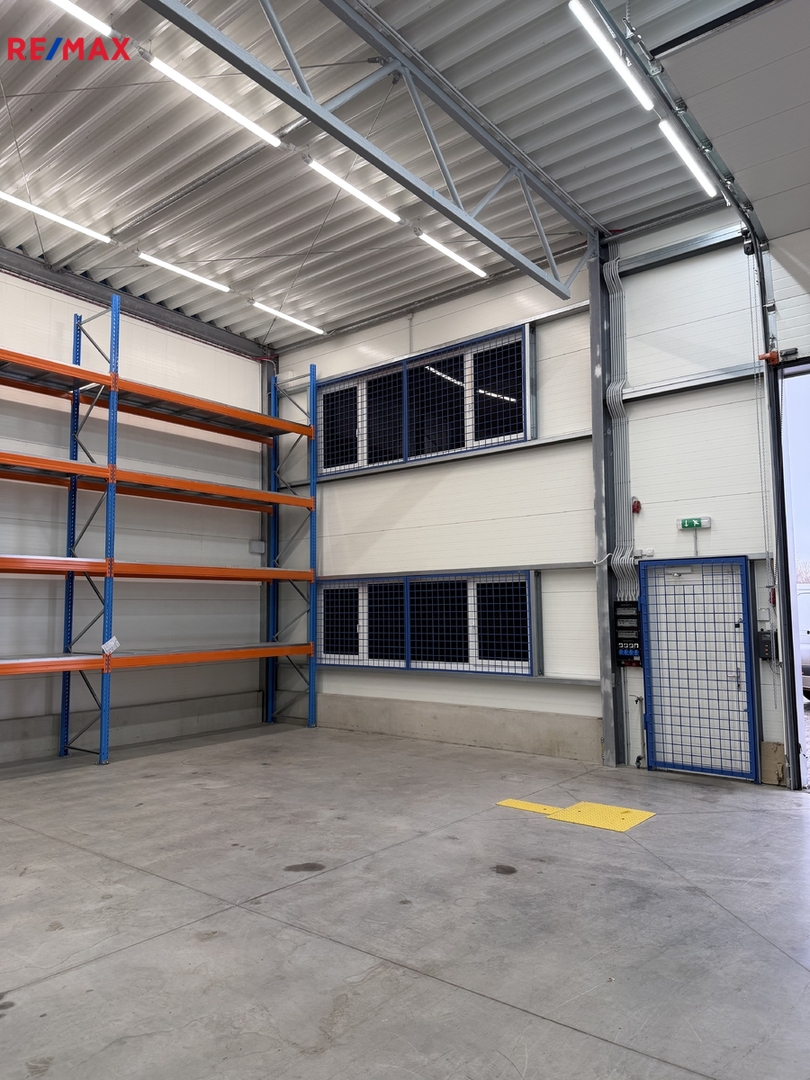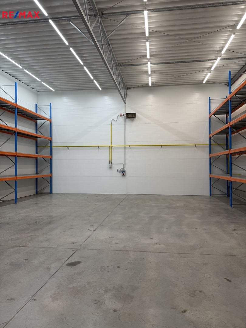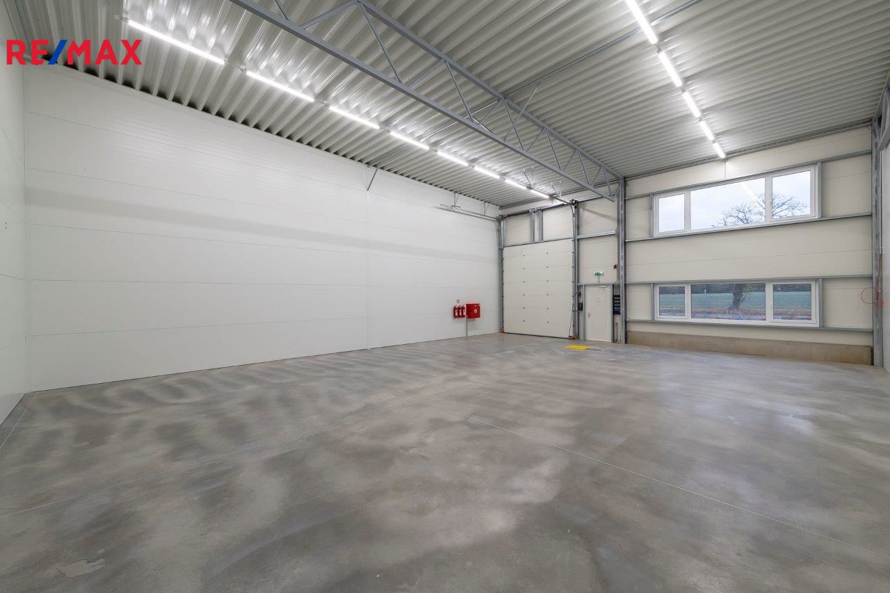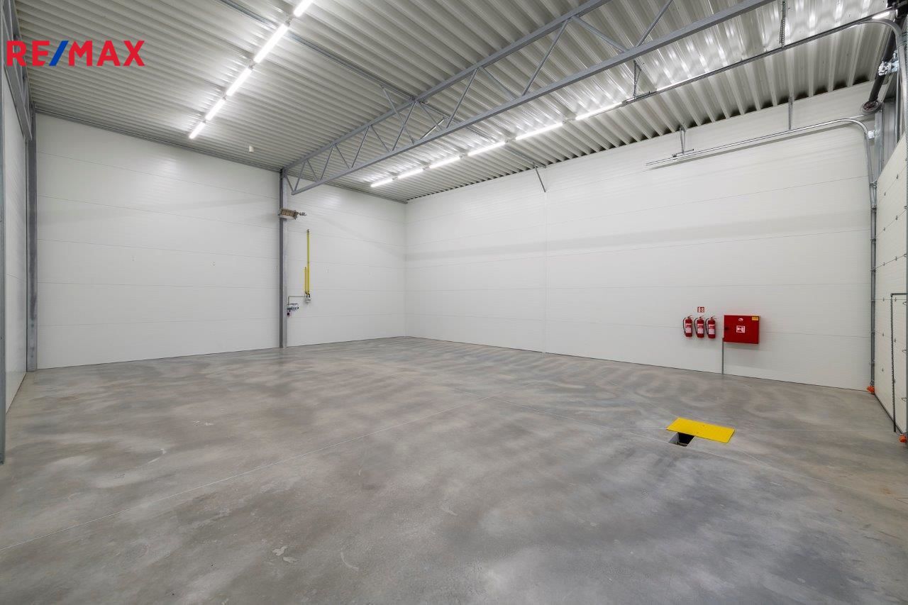 Aktuálně nabízíme jednu volnou komerční halu o rozloze 180 m2 – rozměry 12x15m s možností nastěhování 1.3. 2026. Možnost doplnit halu kancelářskými prostory se sociálním zařízením formou stavebních buněk, nebo formou lehké konstrukční vestavby. V hale jsou připraveny přípojky kanalizace, vodovodu, samozřejmostí je elektřina 220 V i 380. Hala má instalovanou klimatizaci/vzduchotechniku pro udržování konstantní teploty. Hala má namontována podružná měřidla na elektřinu, vodu a plyn. V místě možnost připojení na internet – optický kabel a pult centrální ochrany – Jablotron nebo lokální poskytovatel služby. Led osvětlení naddimenzované – 260lx v 80cm od země. Maximální zatížení podlahy 4t/m2. Vytápění plynem. Součástí nabídky je pronájem včetně skladového policového systému umístěného po obou delších stranách haly – viz. fotografie.