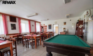 V přízemí se nachází vybavená hospoda s venkovním posezením, která je tradiční zastávkou mezinárodní cyklistické klientely. Současný majitel otevírá ze zdravotních důvodů pouze v pátek a v neděli. Pro nového majitele to znamená okamžitou příležitost znásobit tržby pouhým rozšířením otevírací doby. Prostor je navíc mimořádně levný na provoz díky vytápění tepelným čerpadlem.